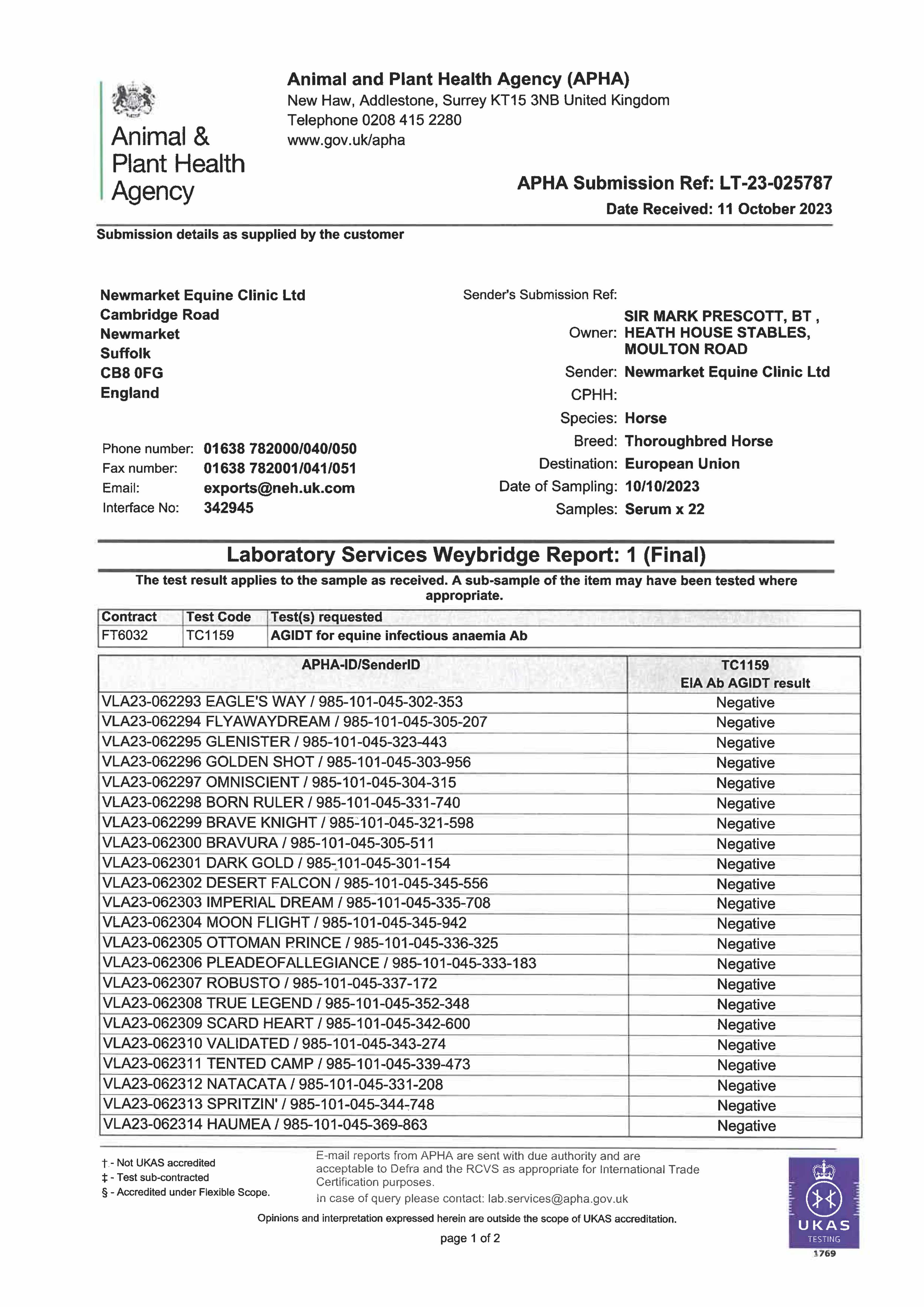 Consignor: Heath House Stables (Sir Mark Prescott, Bt.)