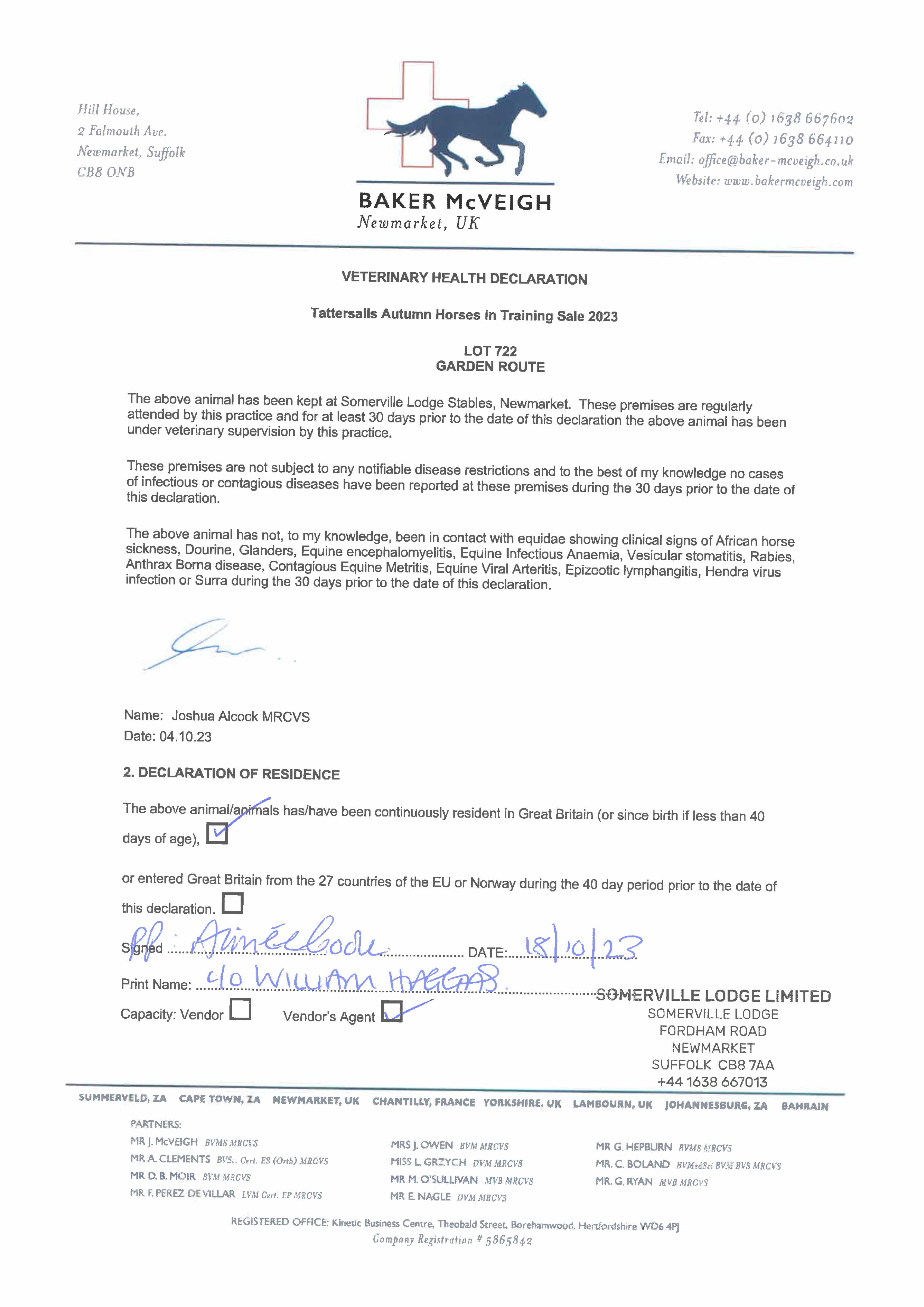 Consignor: Somerville Lodge Ltd. (W. Haggas), Agent