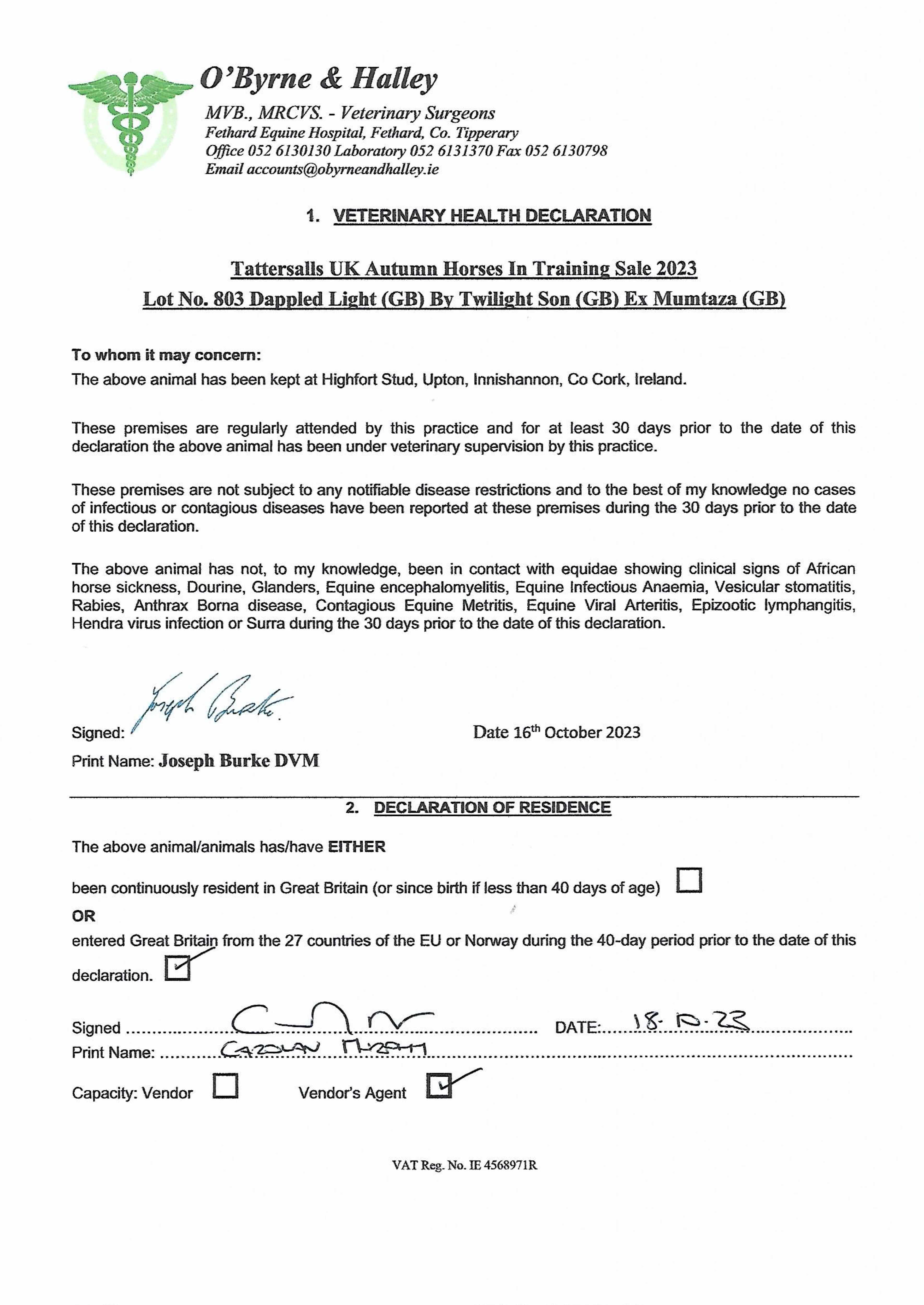 Consignor: Highfort Stud, Ireland