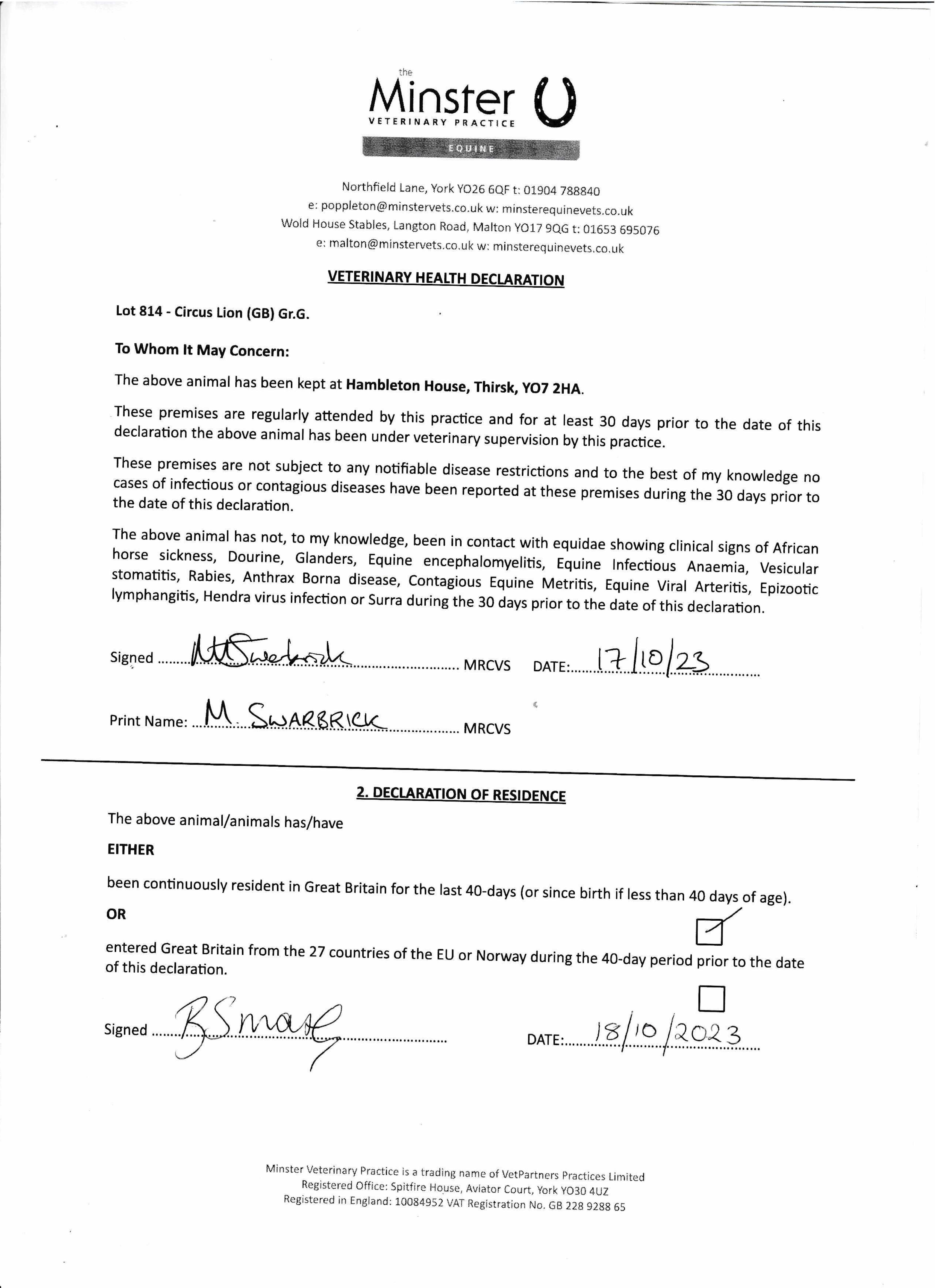 Consignor: Hambleton House Stables (B. Smart)