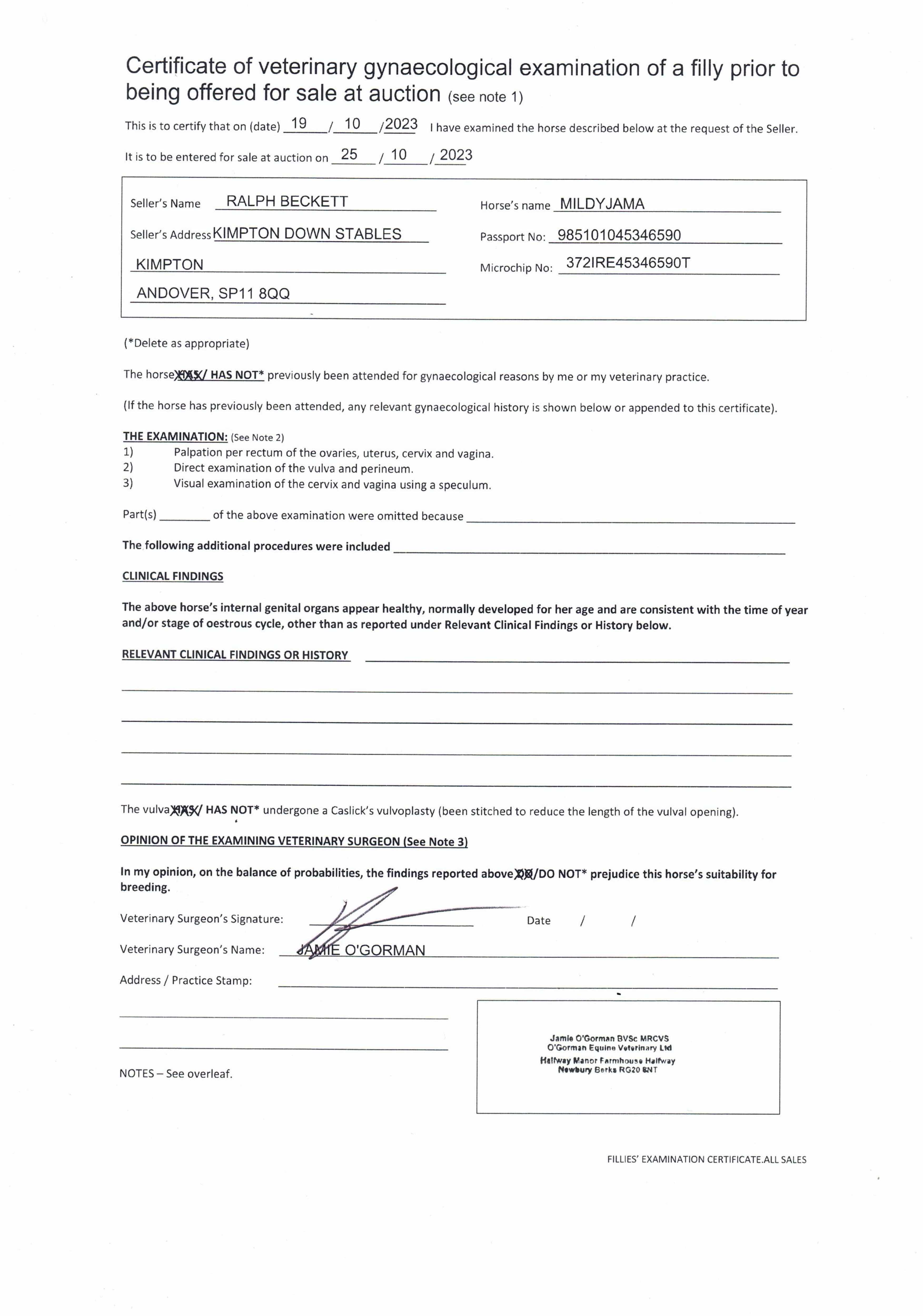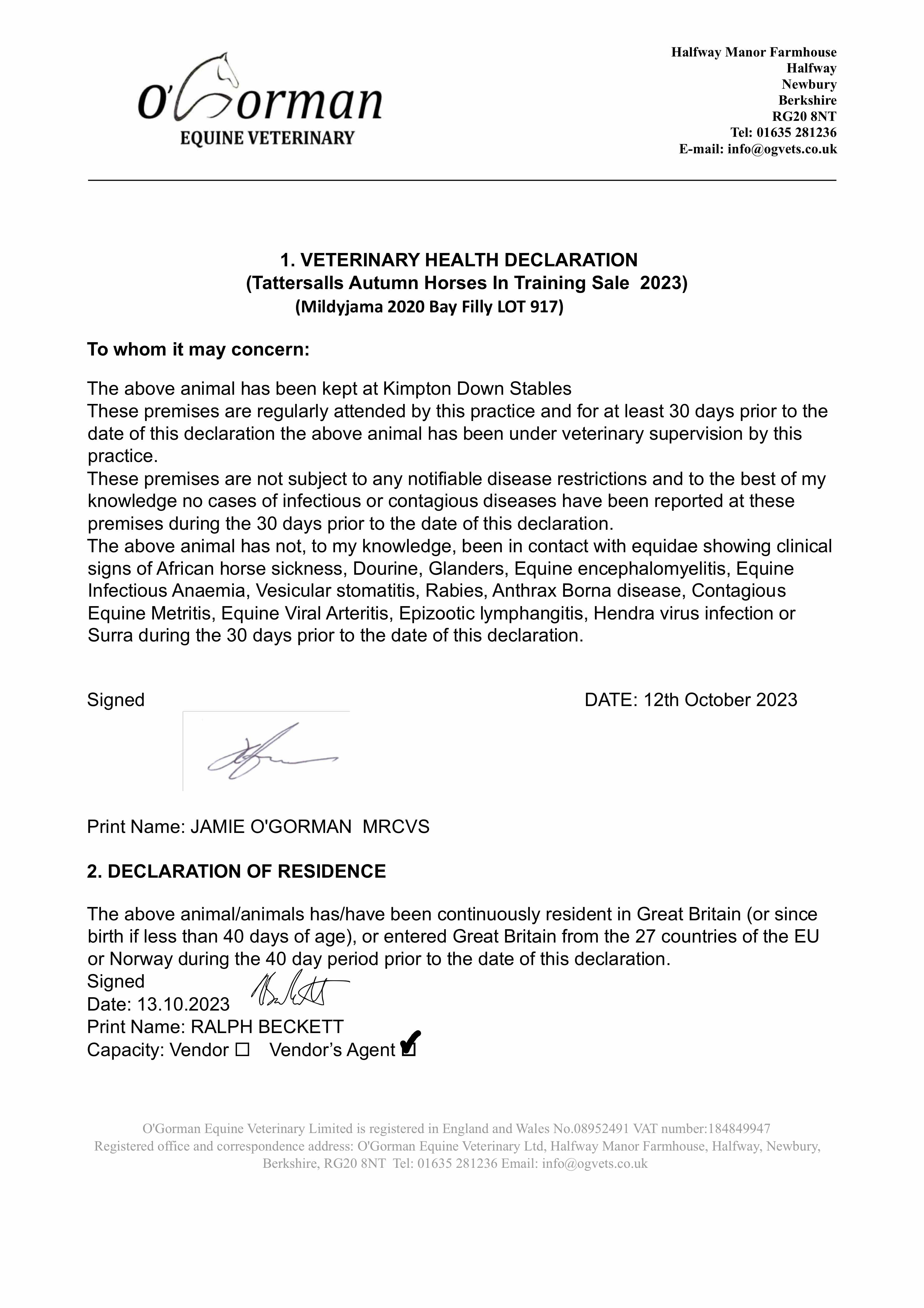 Consignor: Jamie Railton (Agent)