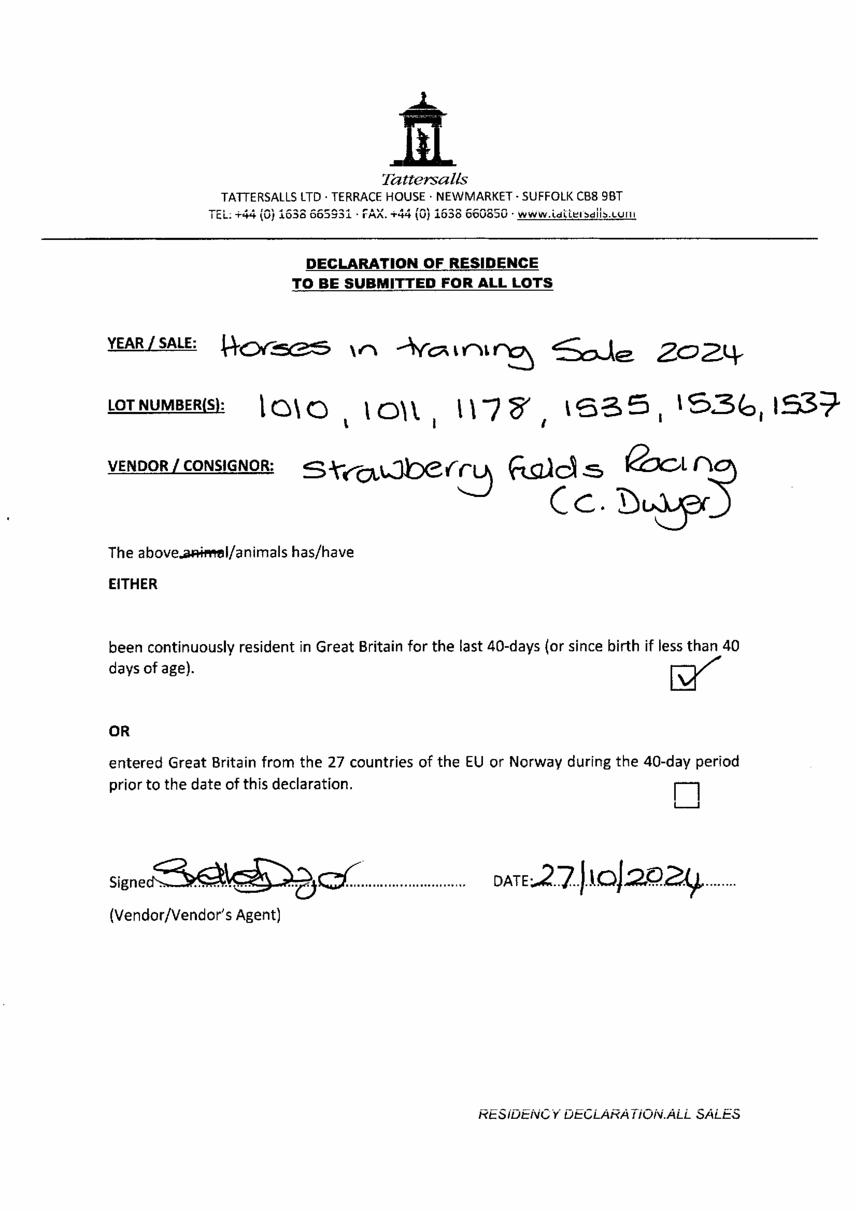 Consignor: Strawberry Fields Racing (C. Dwyer)