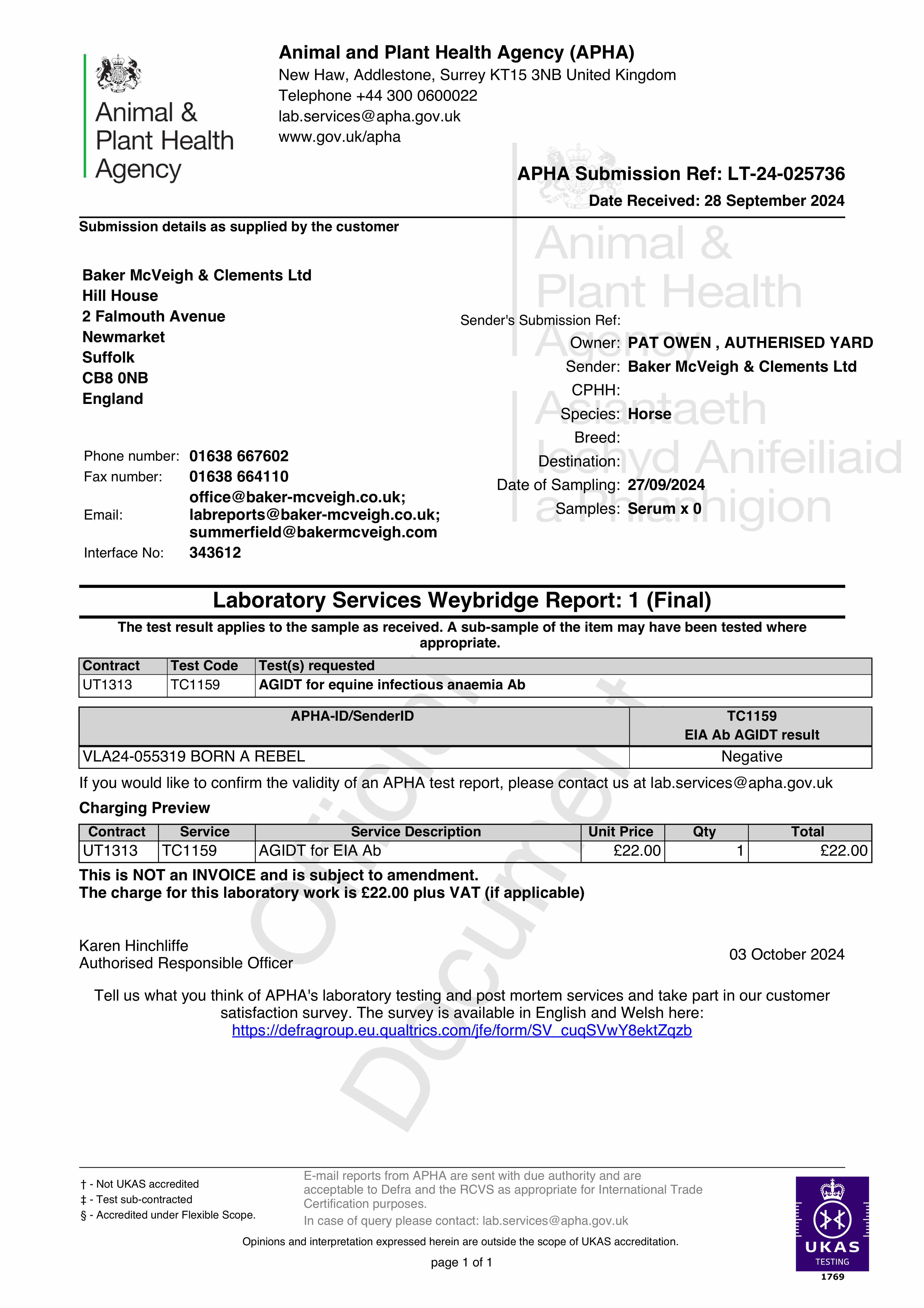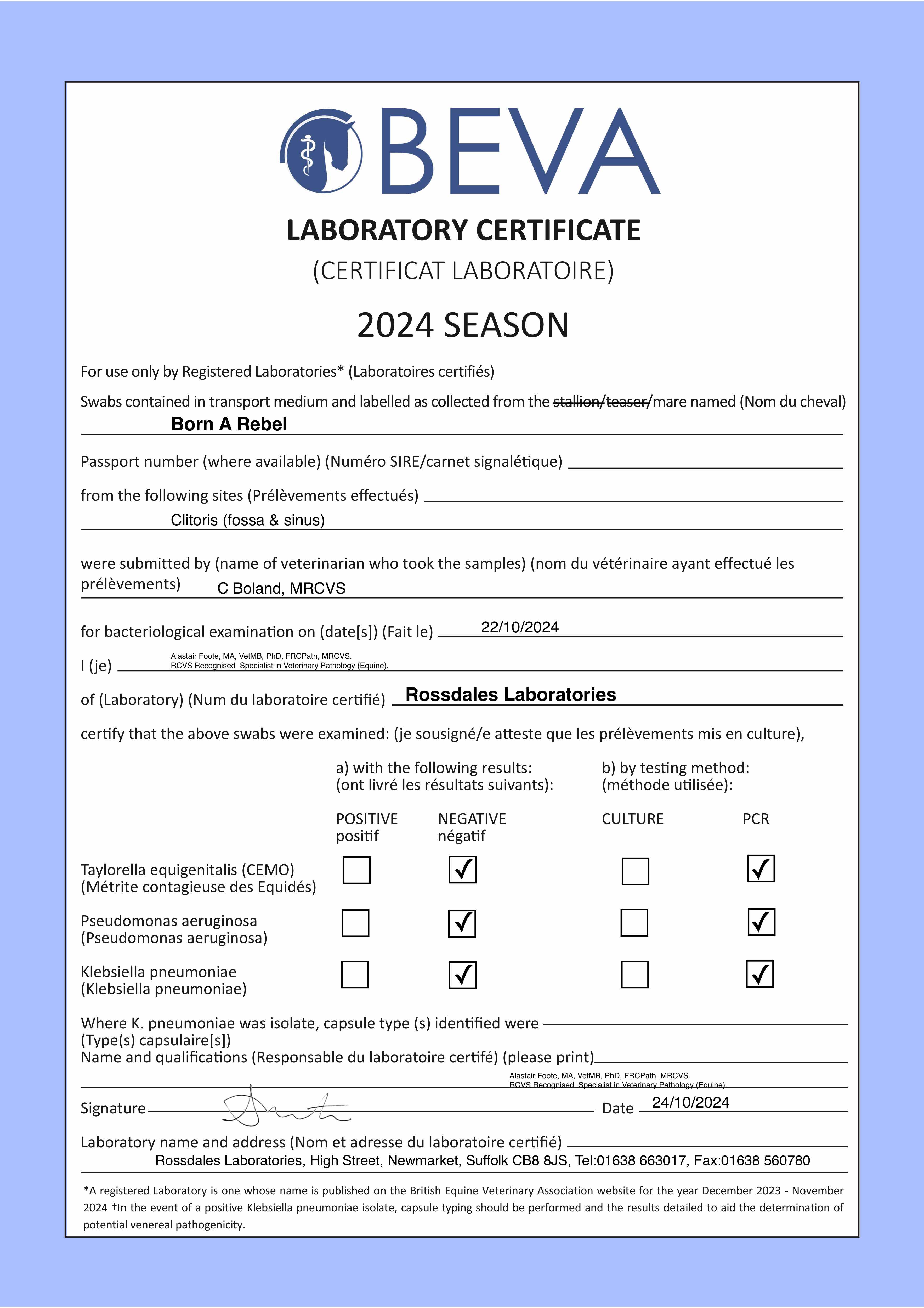 Official Veterinarian Declaration
