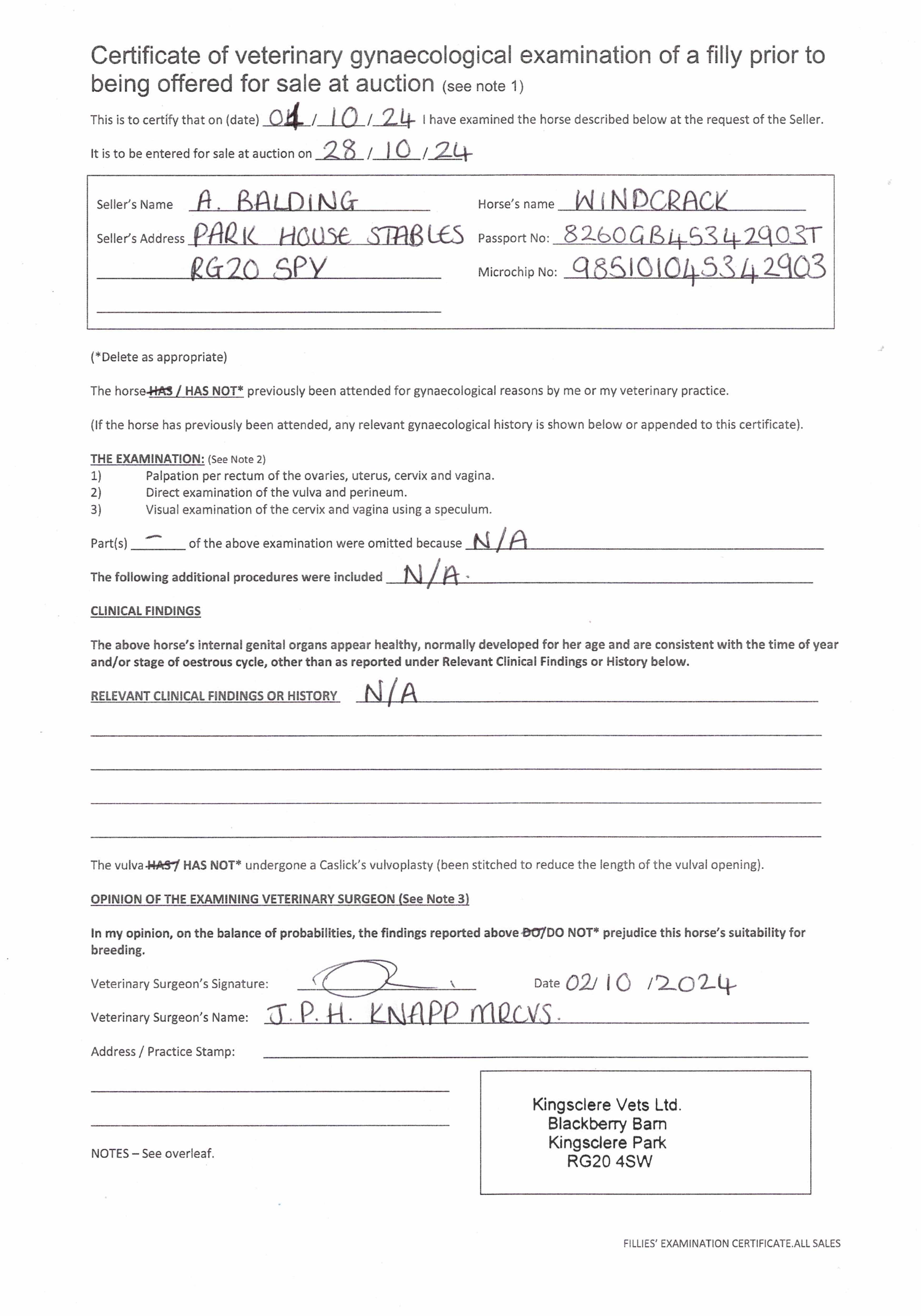 Consignor: Kingsclere Training Stables (A. Balding)