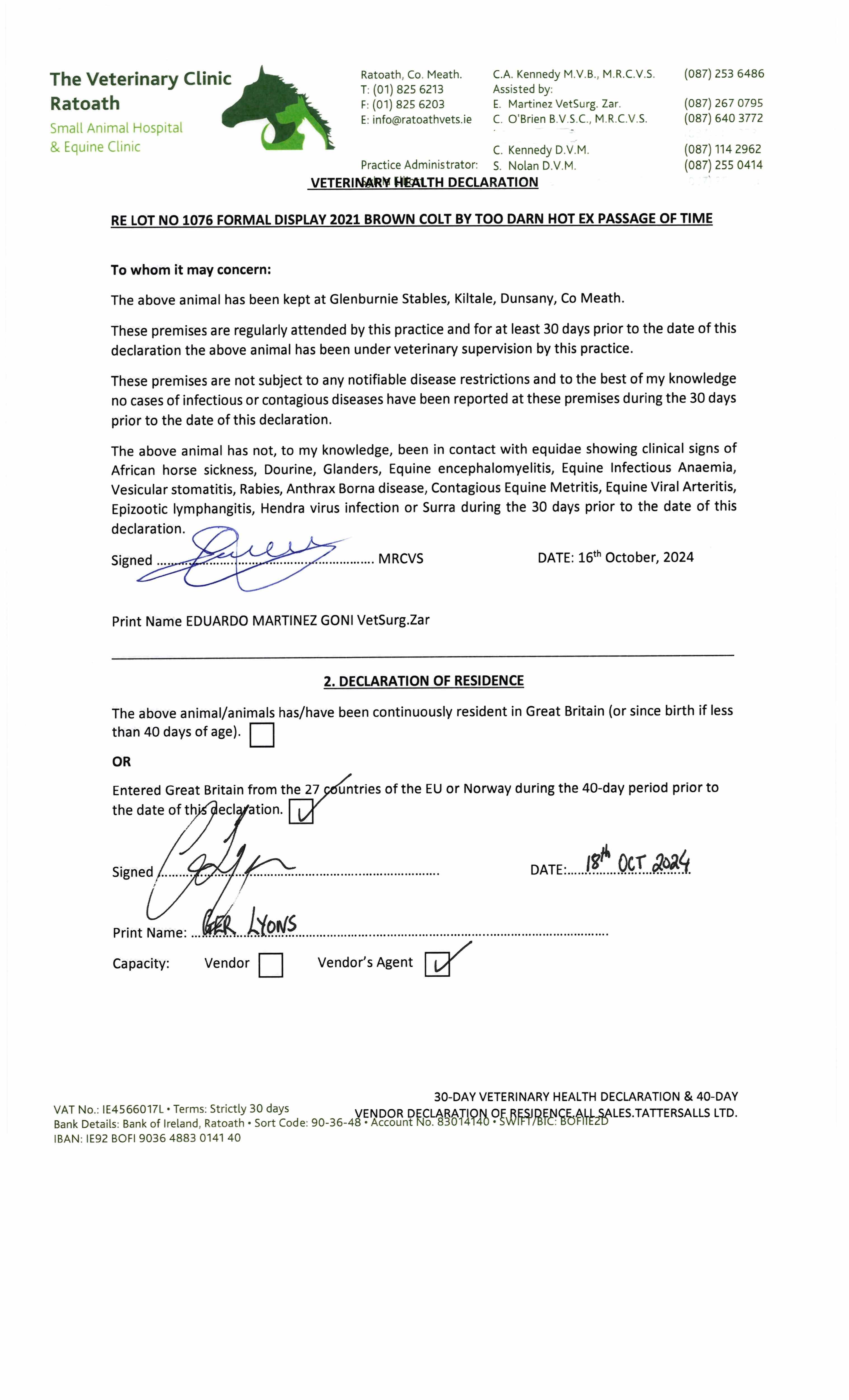 Online Sale - 14th December 2023 lot 106 A Breeding Right to Time Test (GB) (H. by Dubawi (IRE)), a Gentleman=>Vendor 11,000 gns
