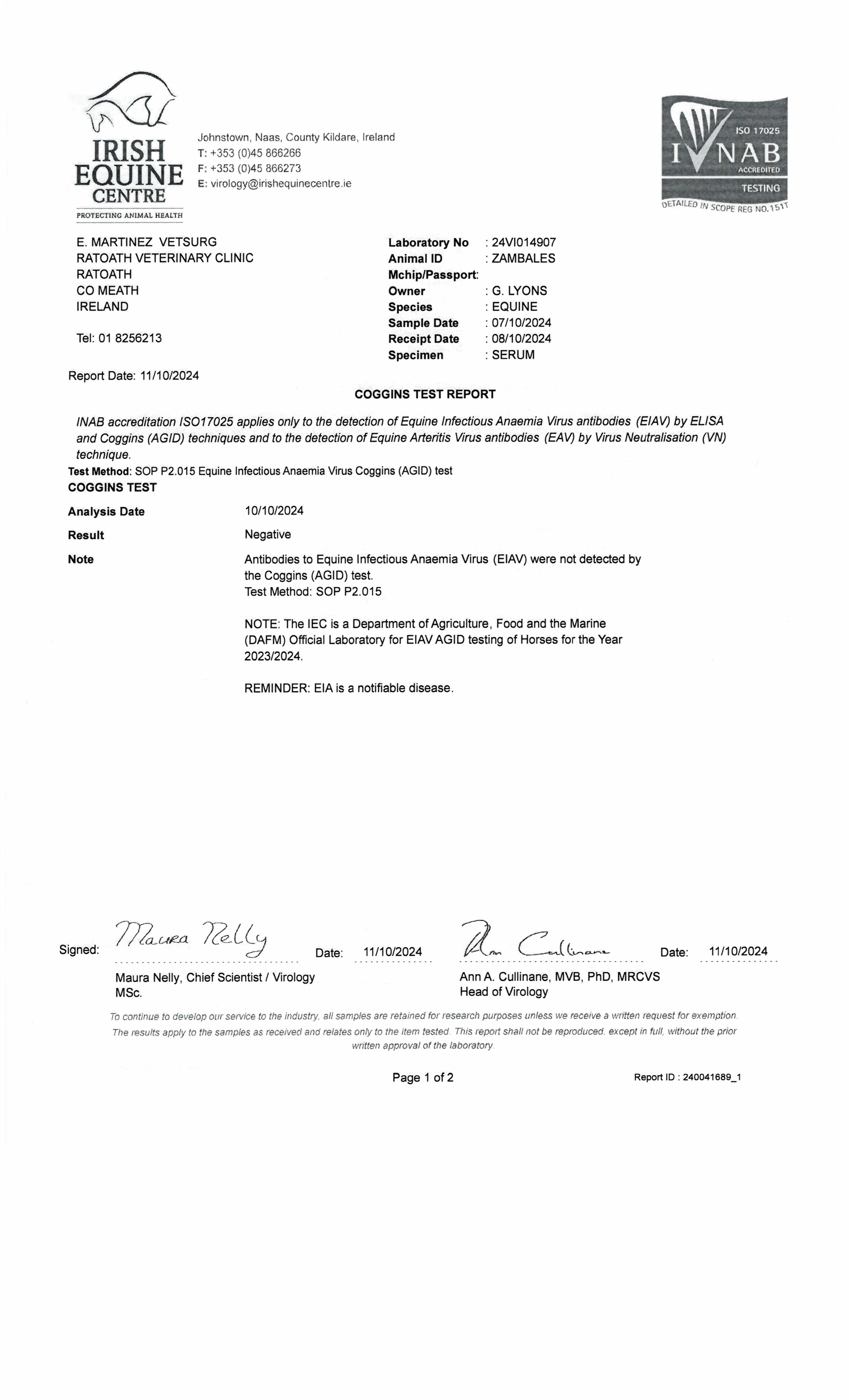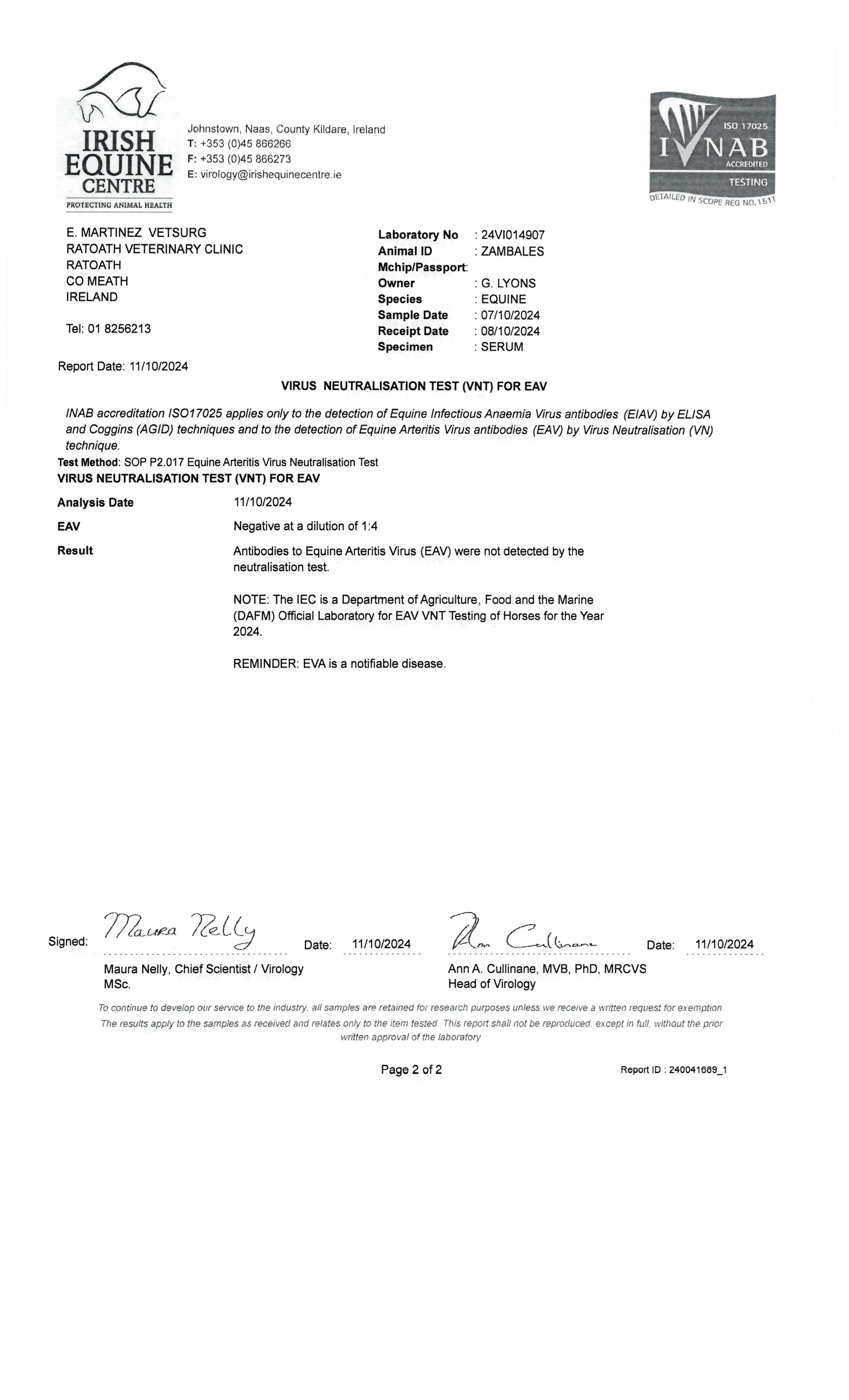 ZAMBALES (GB), placed twice at 2 years, 2024.