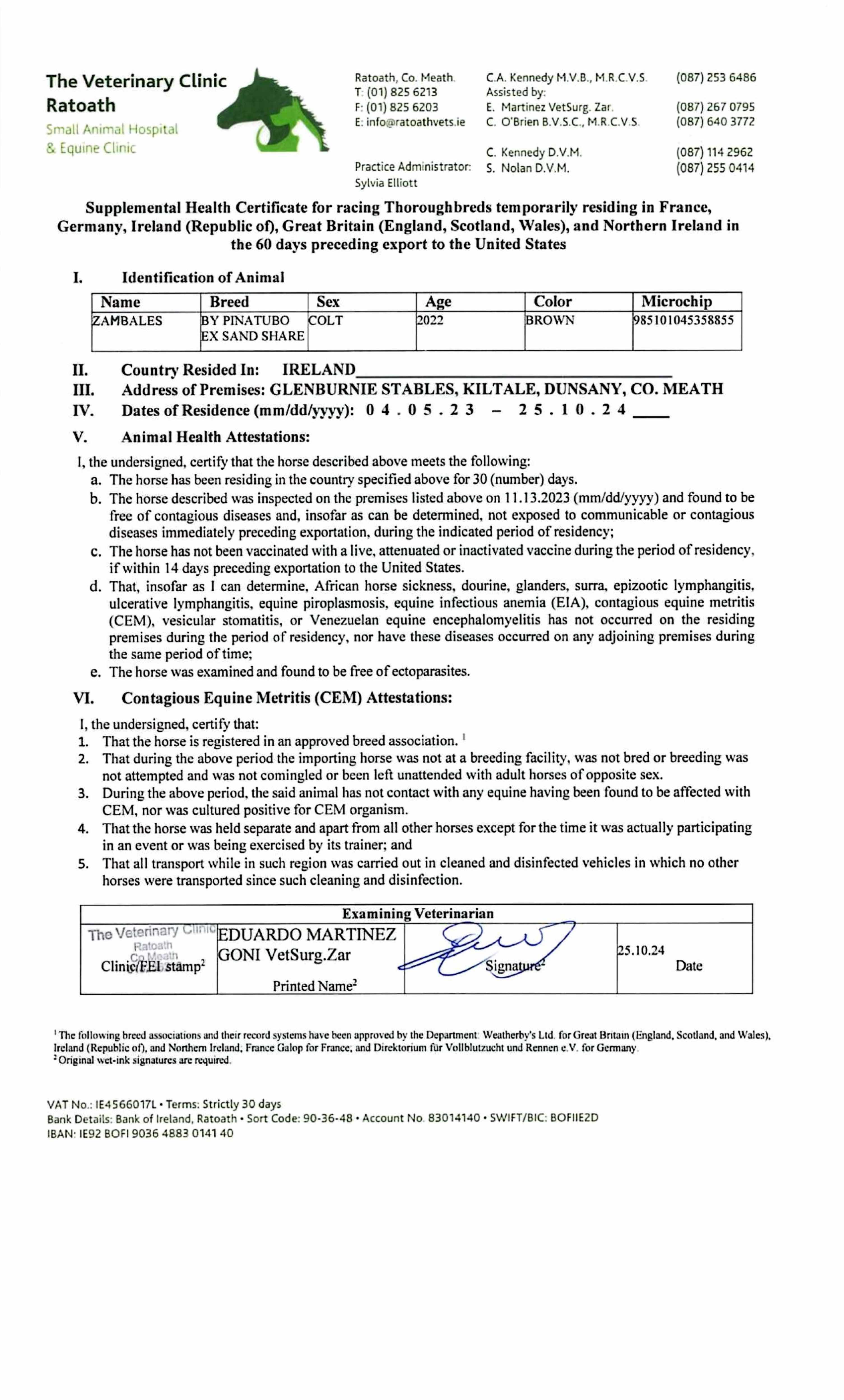 ZAMBALES (GB), placed once at 2 years, 2024.