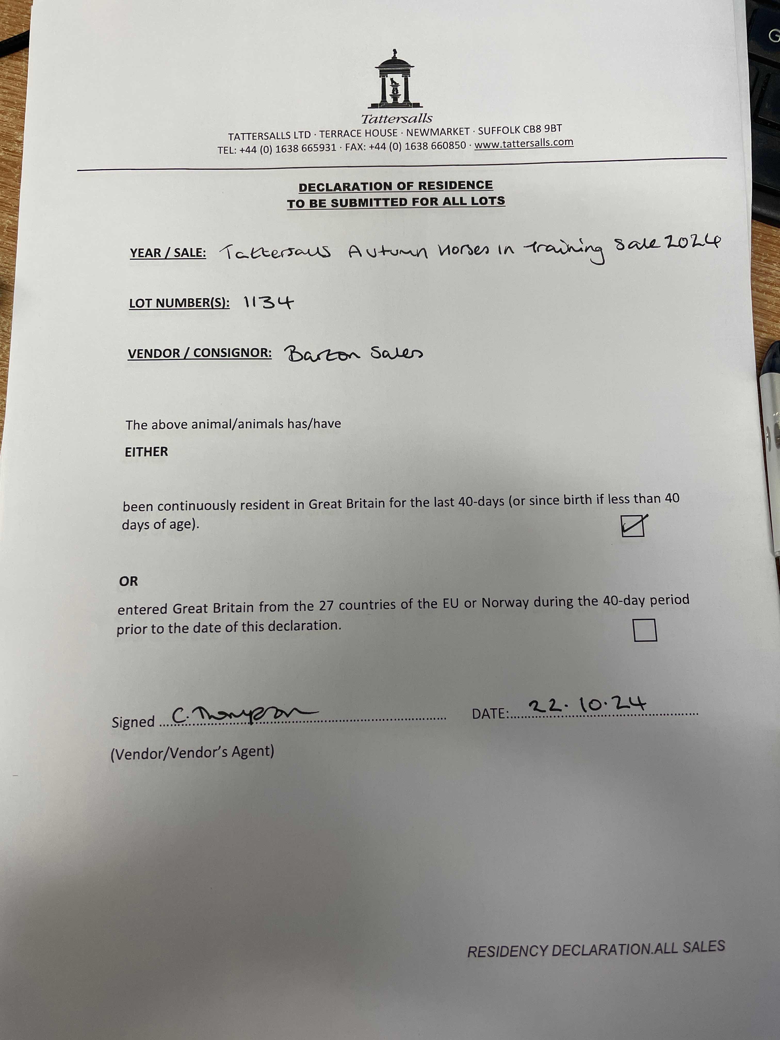 Consignor: Barton Sales