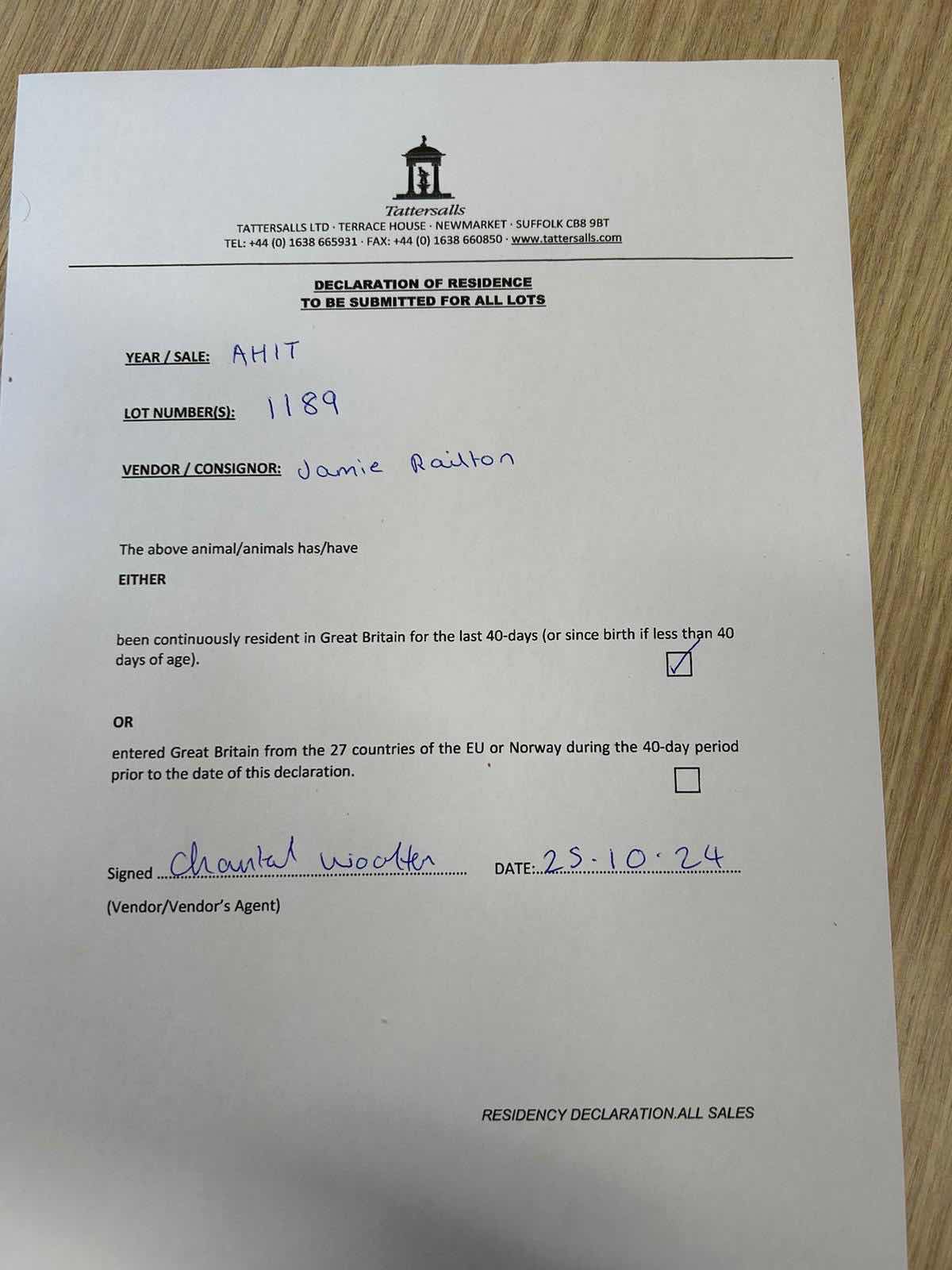 Consignor: Jamie Railton (Agent)