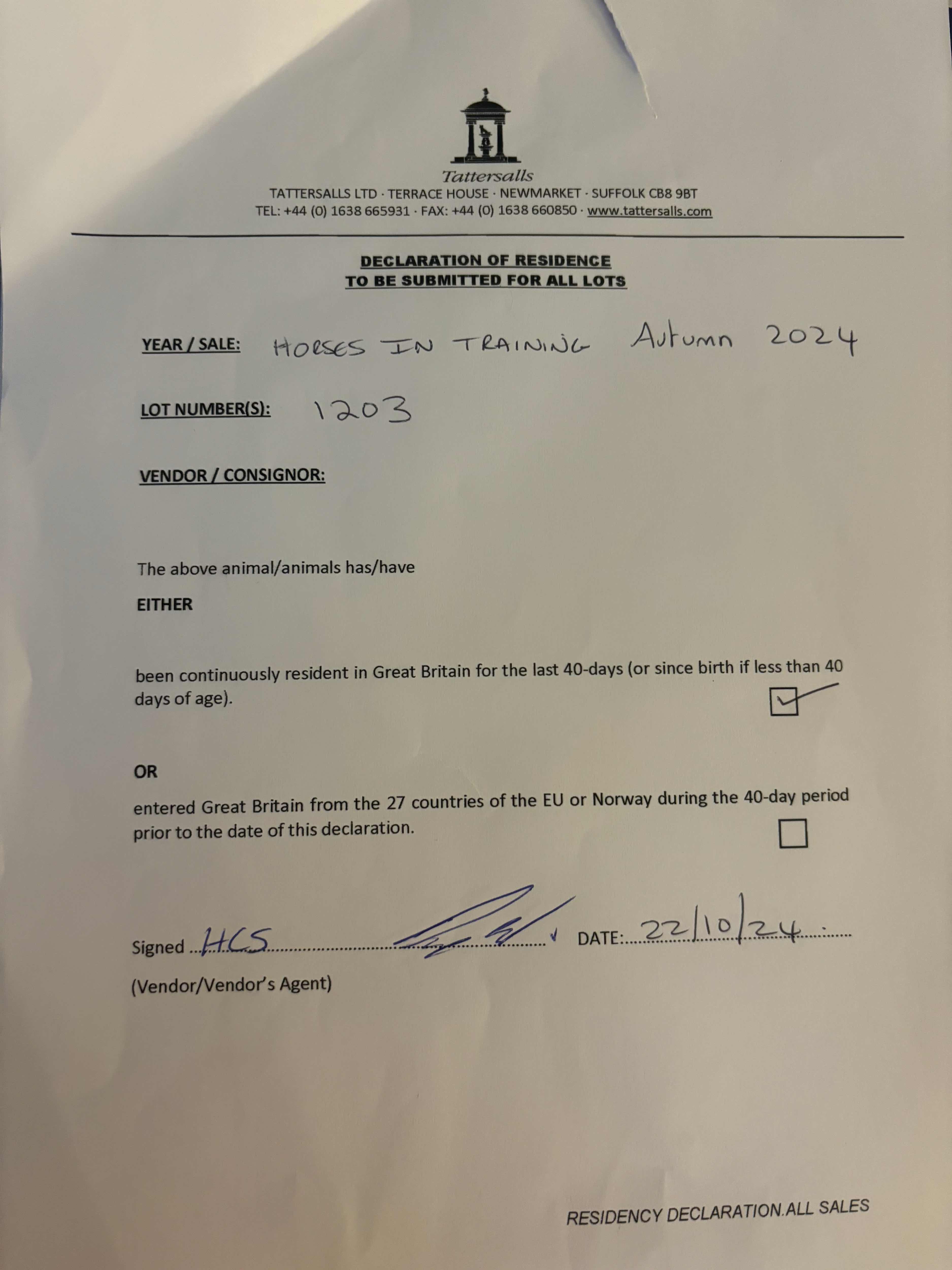 Somerville Yearling Sale 2024 lot 463 C. by Nando Parrado (GB) 2023, Loughmore Stables, Ireland=>Vendor 15,000 gns