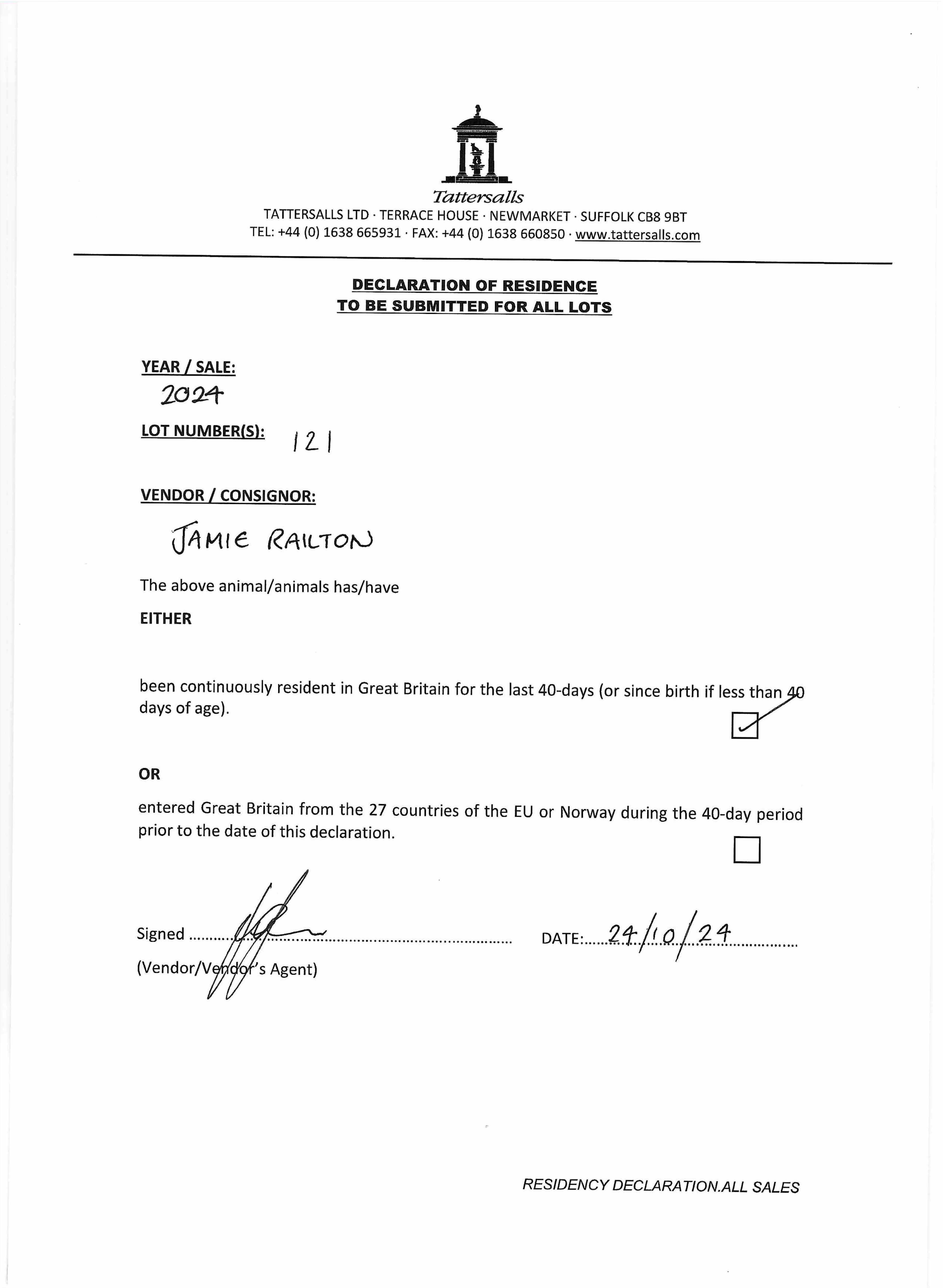 Consignor: Jamie Railton (Agent)
