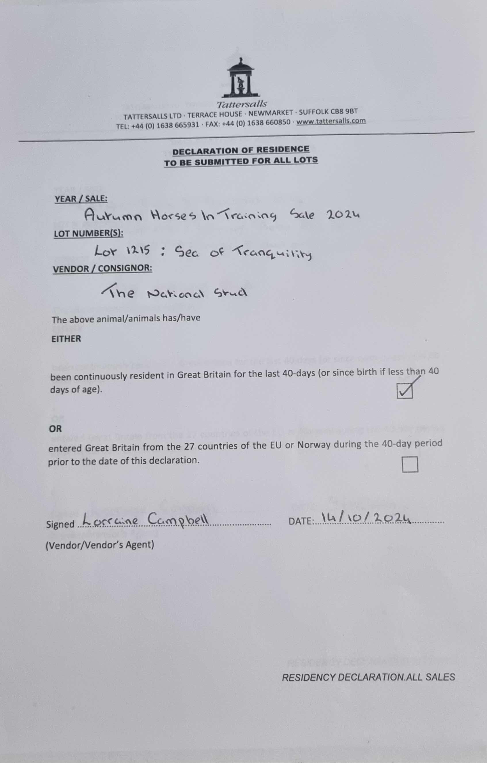 Consignor: The National Stud Ltd.