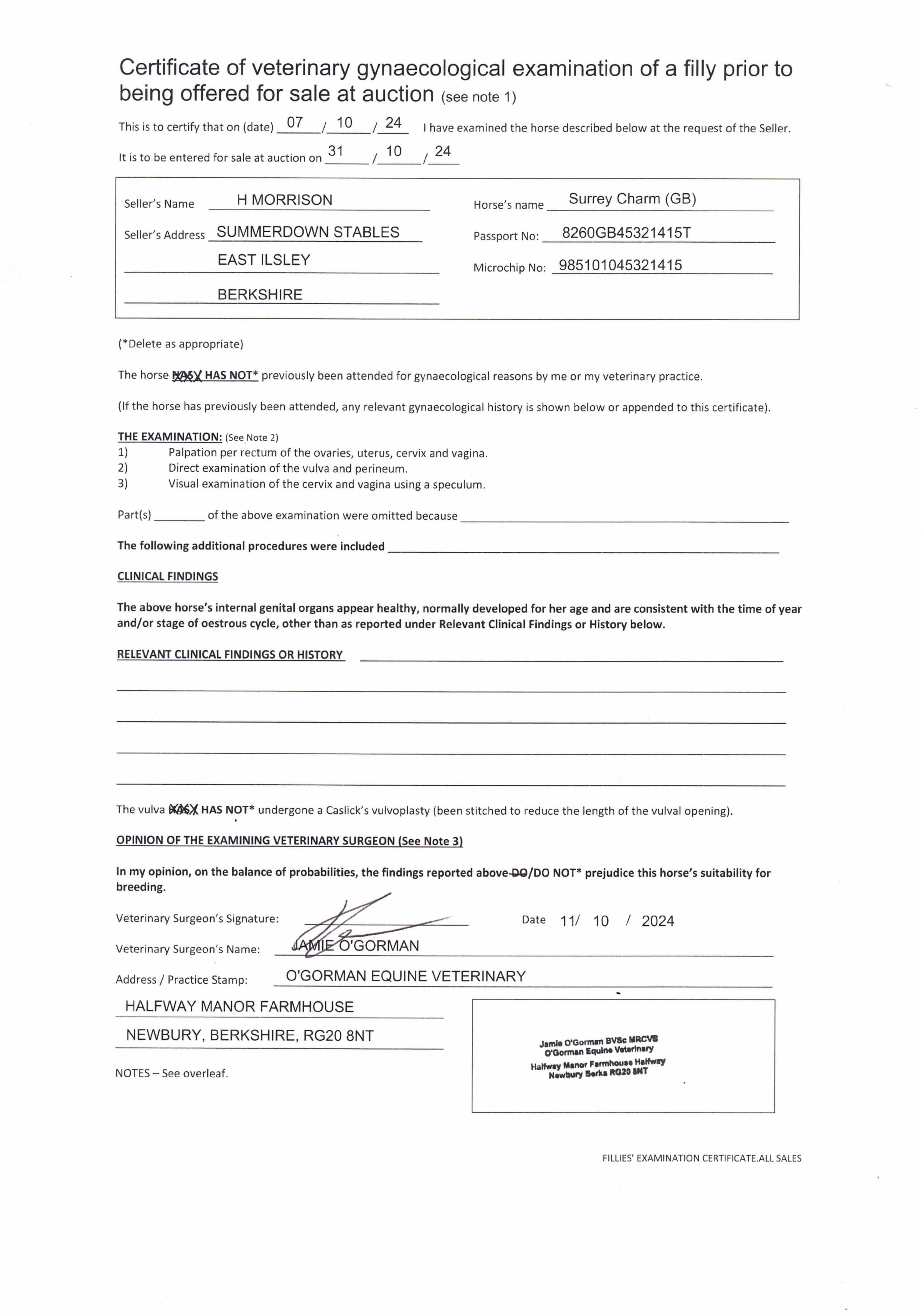 Consignor: Summerdown Stables (H. Morrison)