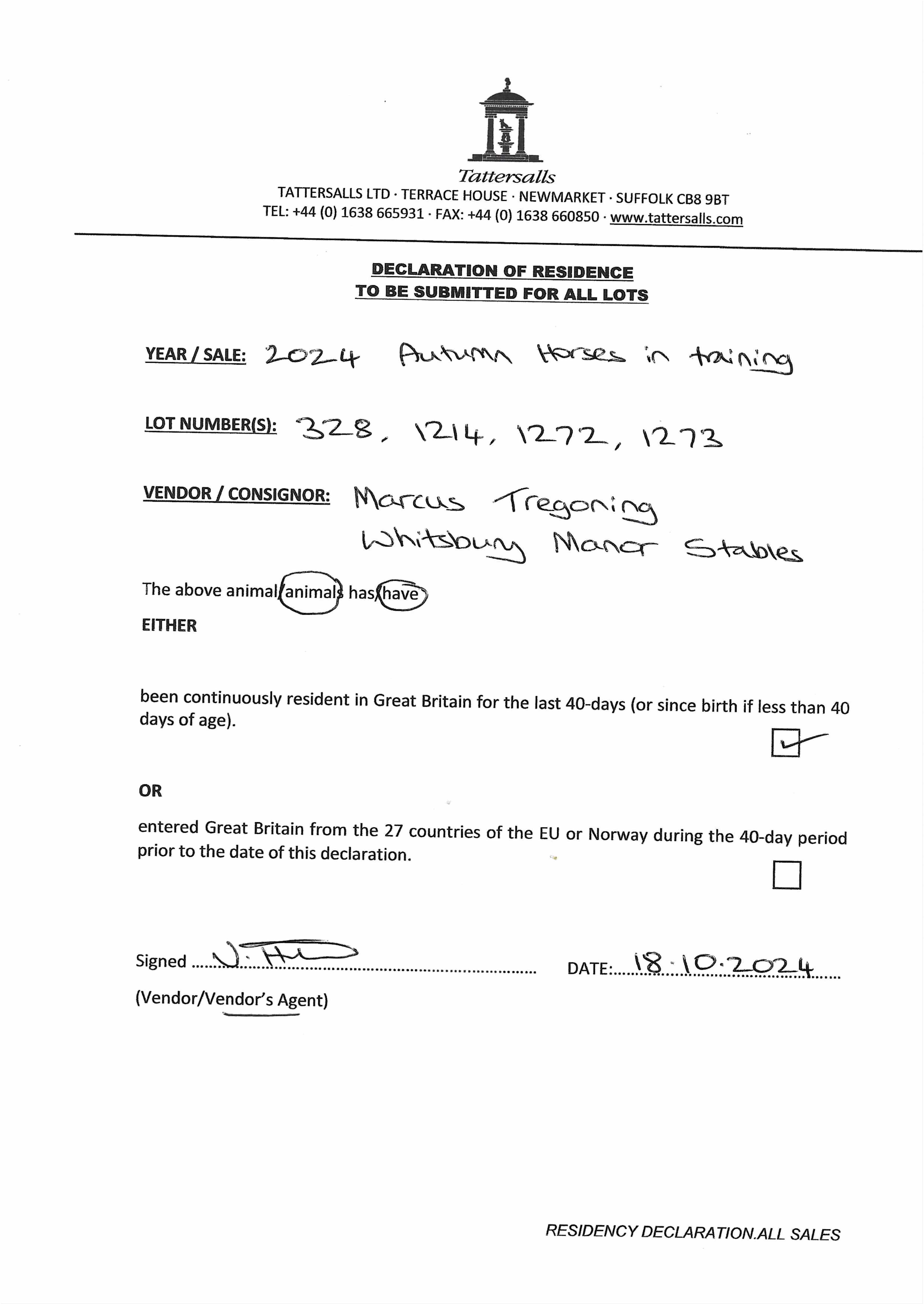 Consignor: Whitsbury Manor Racing Stables (M. Tregoning)