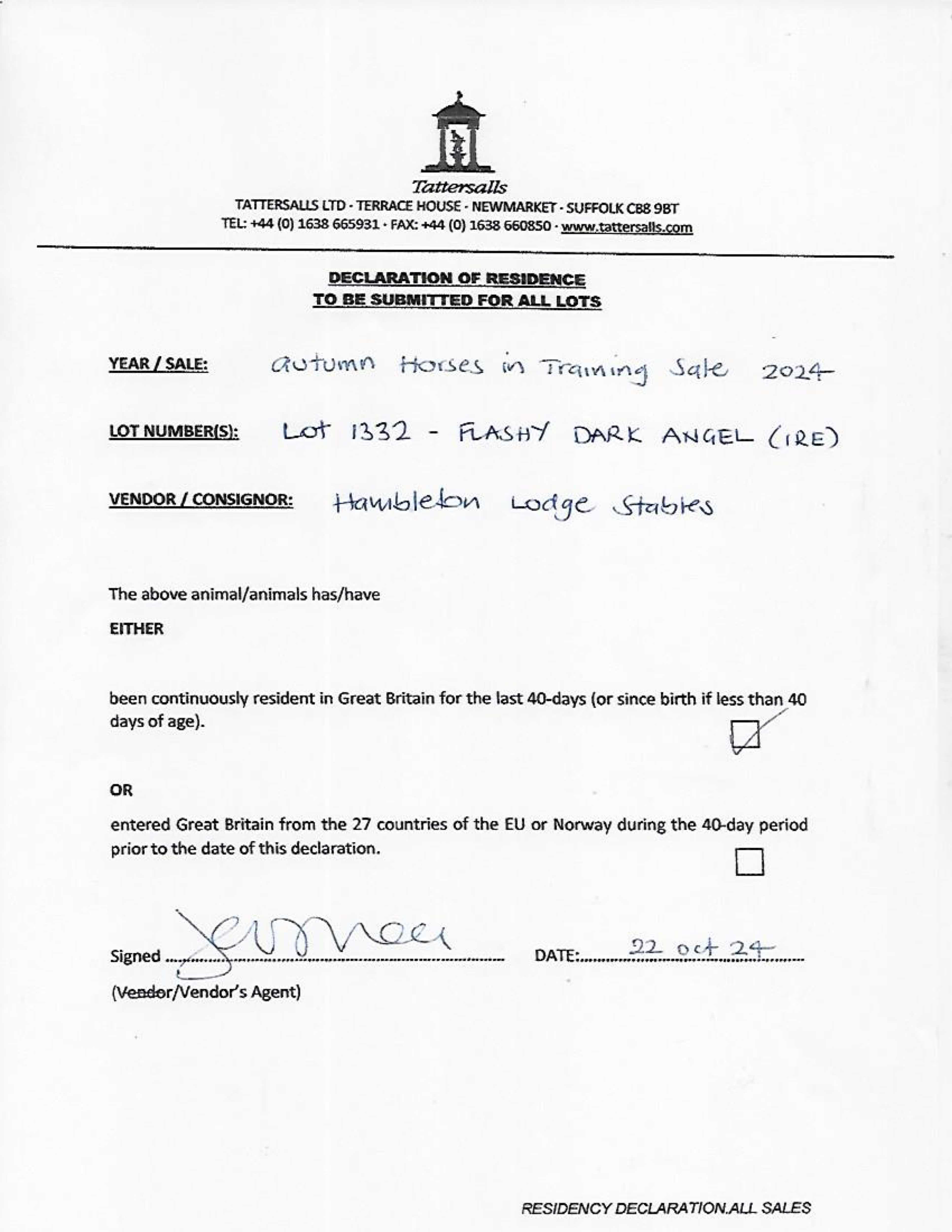 Consignor: Hambleton Lodge Stables (K. Ryan)
