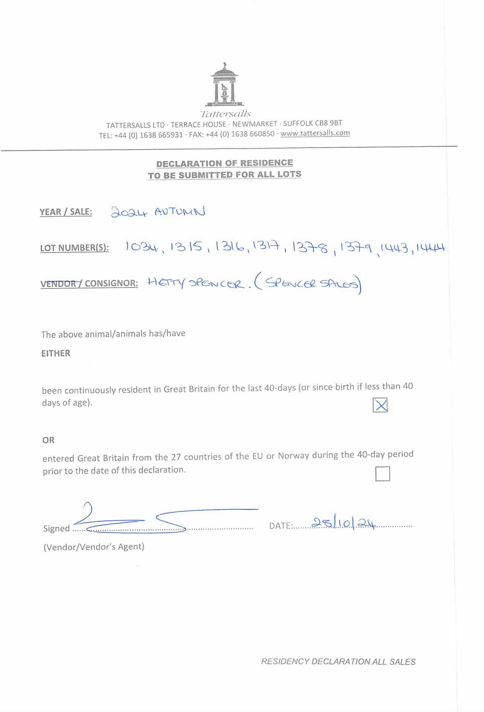 Sunday 27 October: