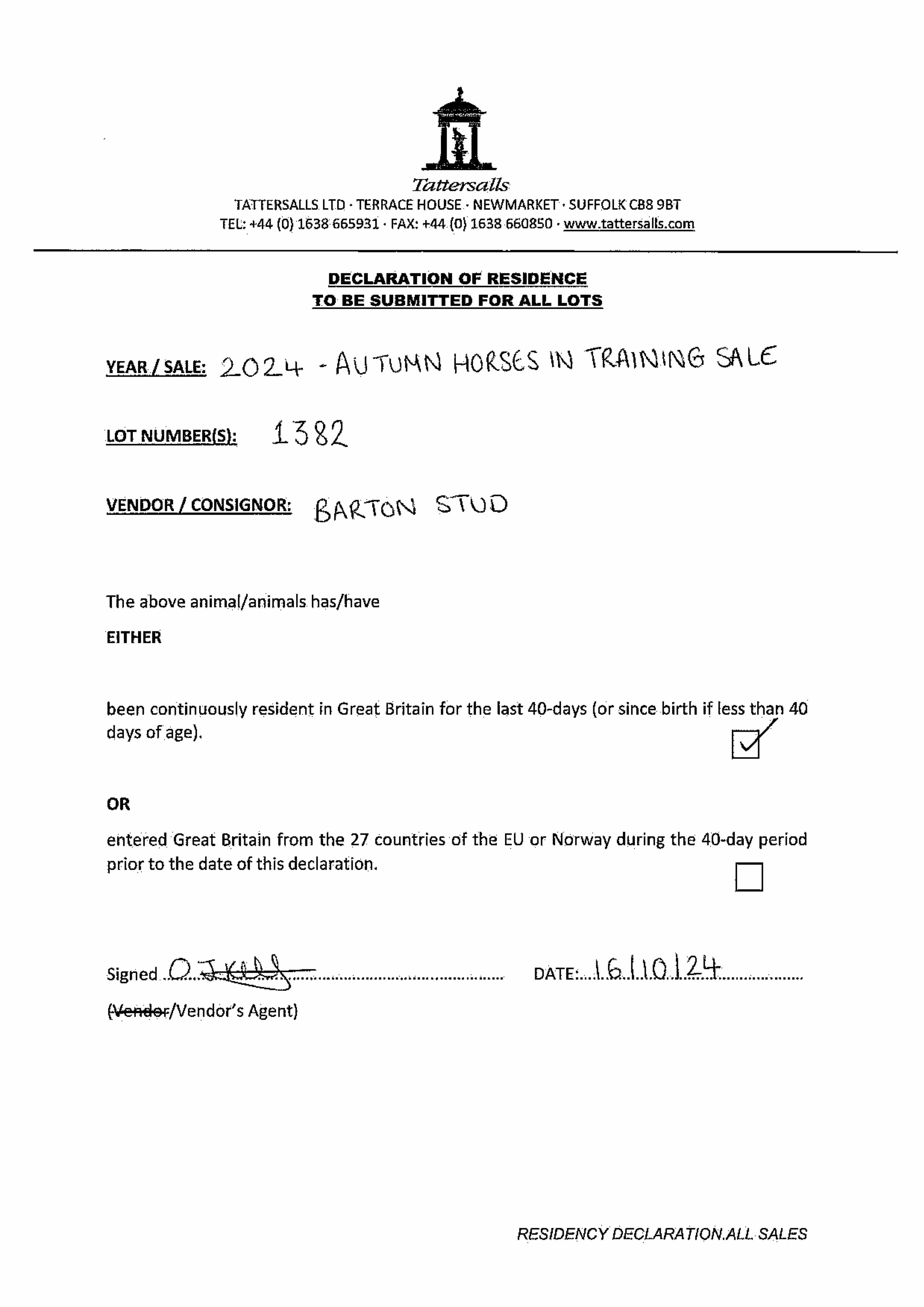 Consignor: Barton Sales