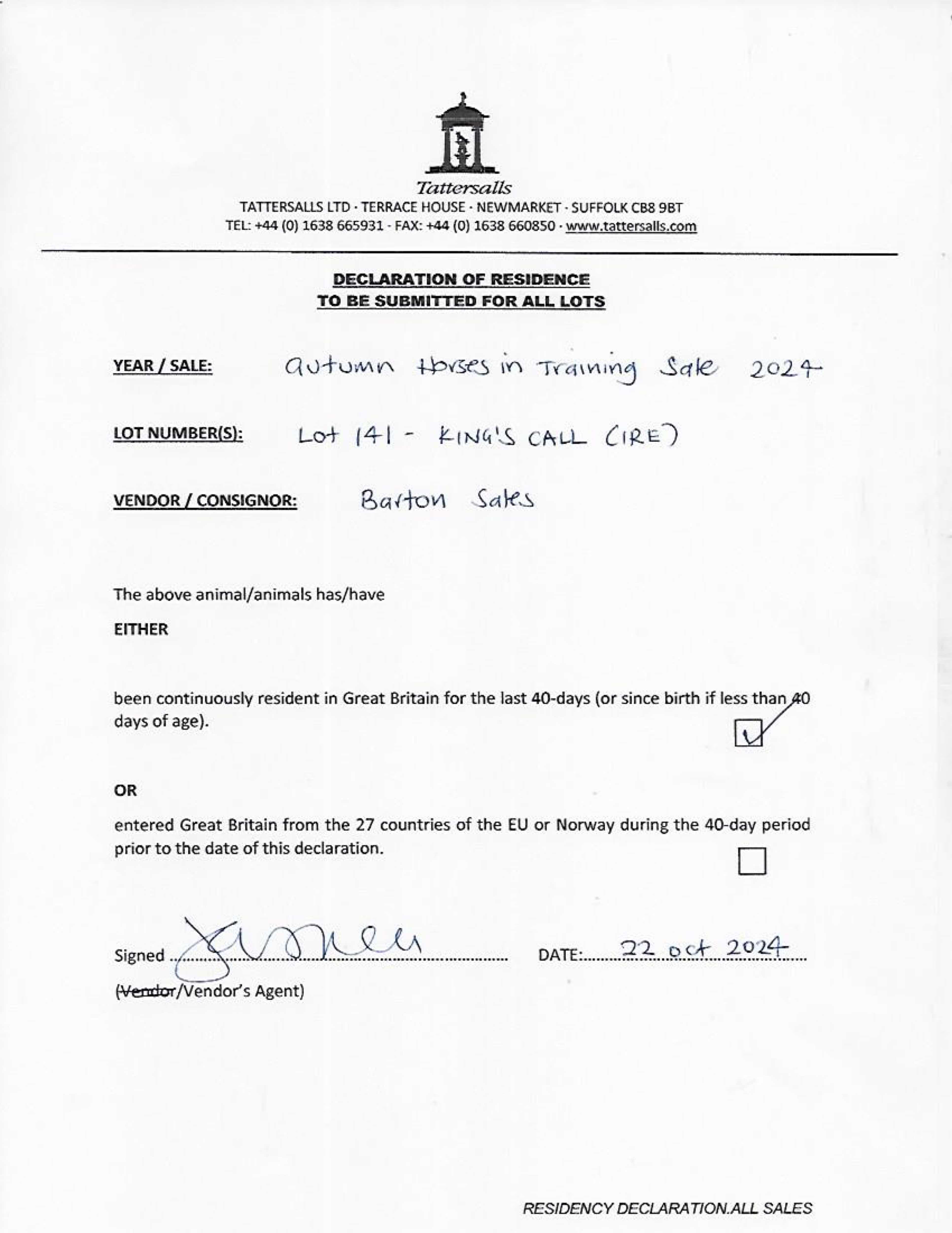 Consignor: Barton Sales