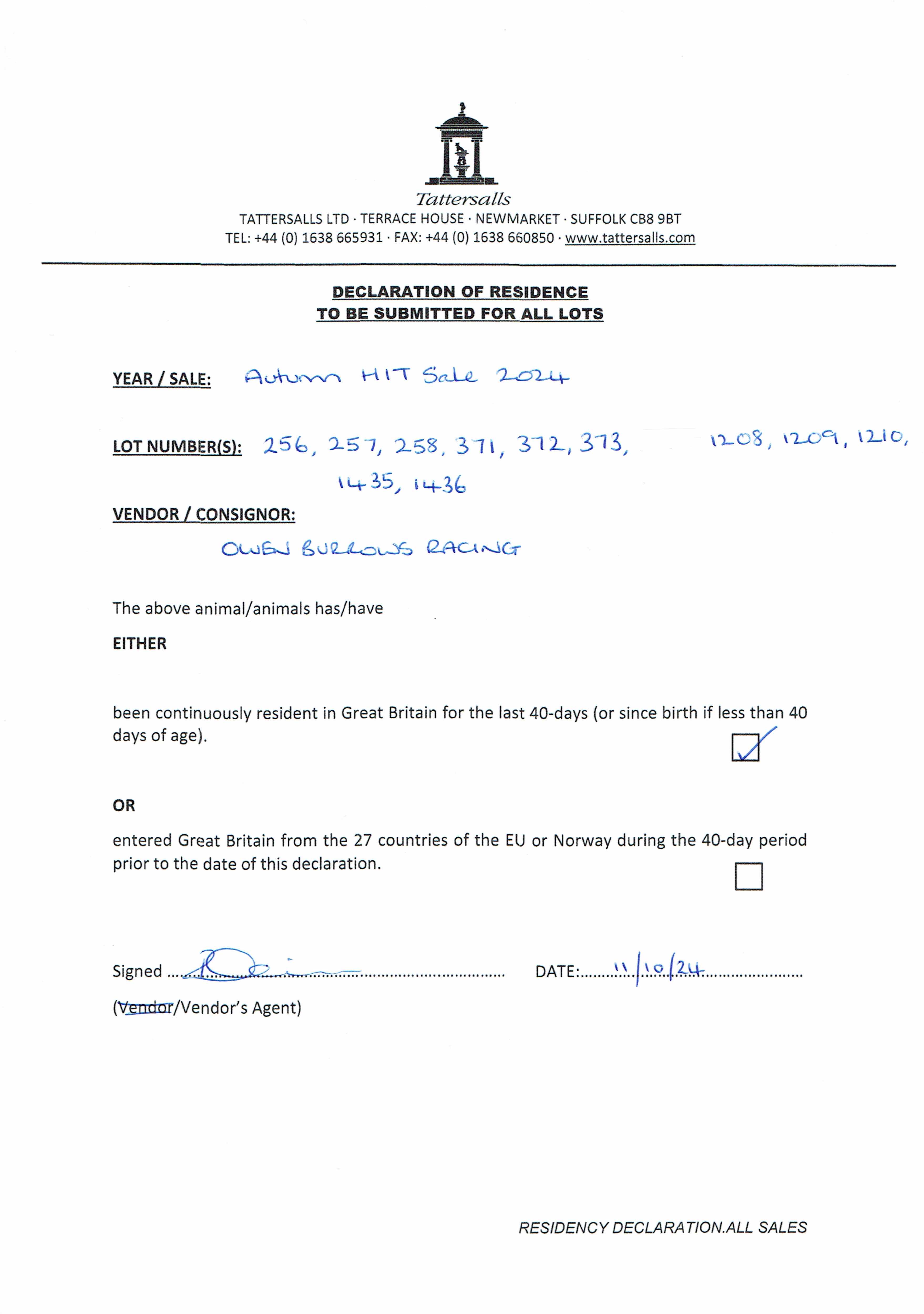 Consignor: Owen Burrows Racing