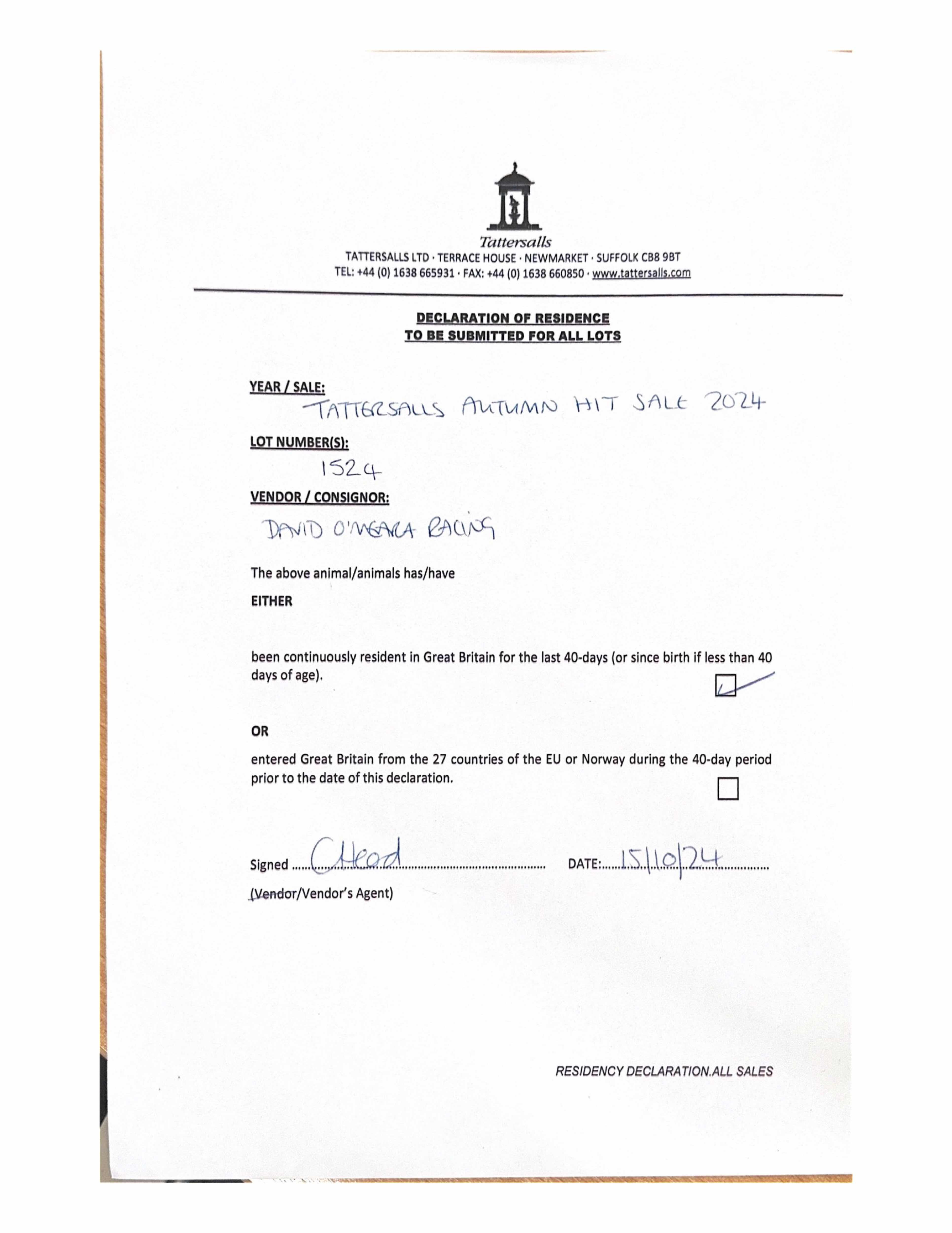Consignor: Baroda Stud, Ireland