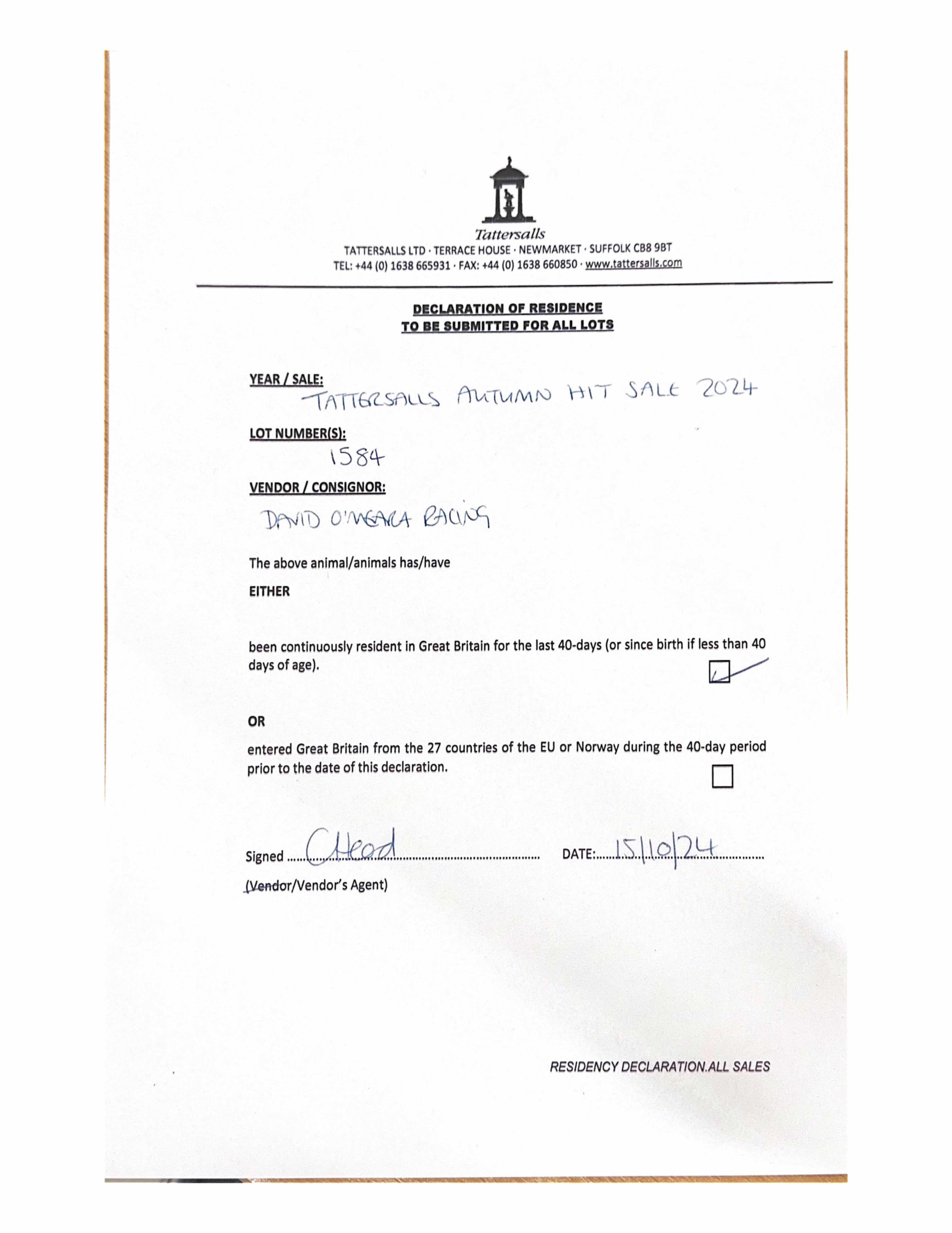 Consignor: Baroda Stud, Ireland