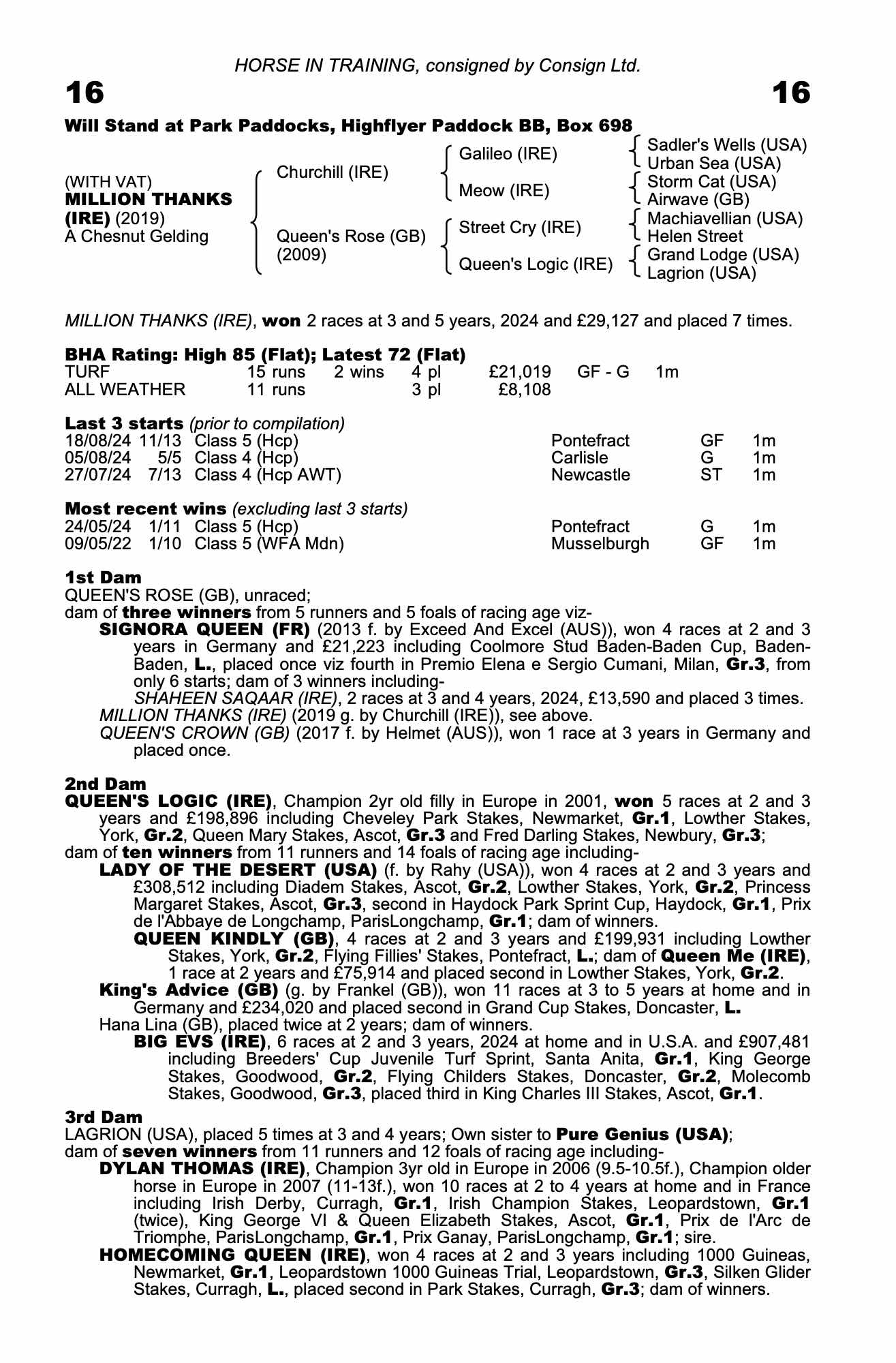 Thursday 17 October:  MILLION THANKS (IRE), placed 8 times and £30,518.