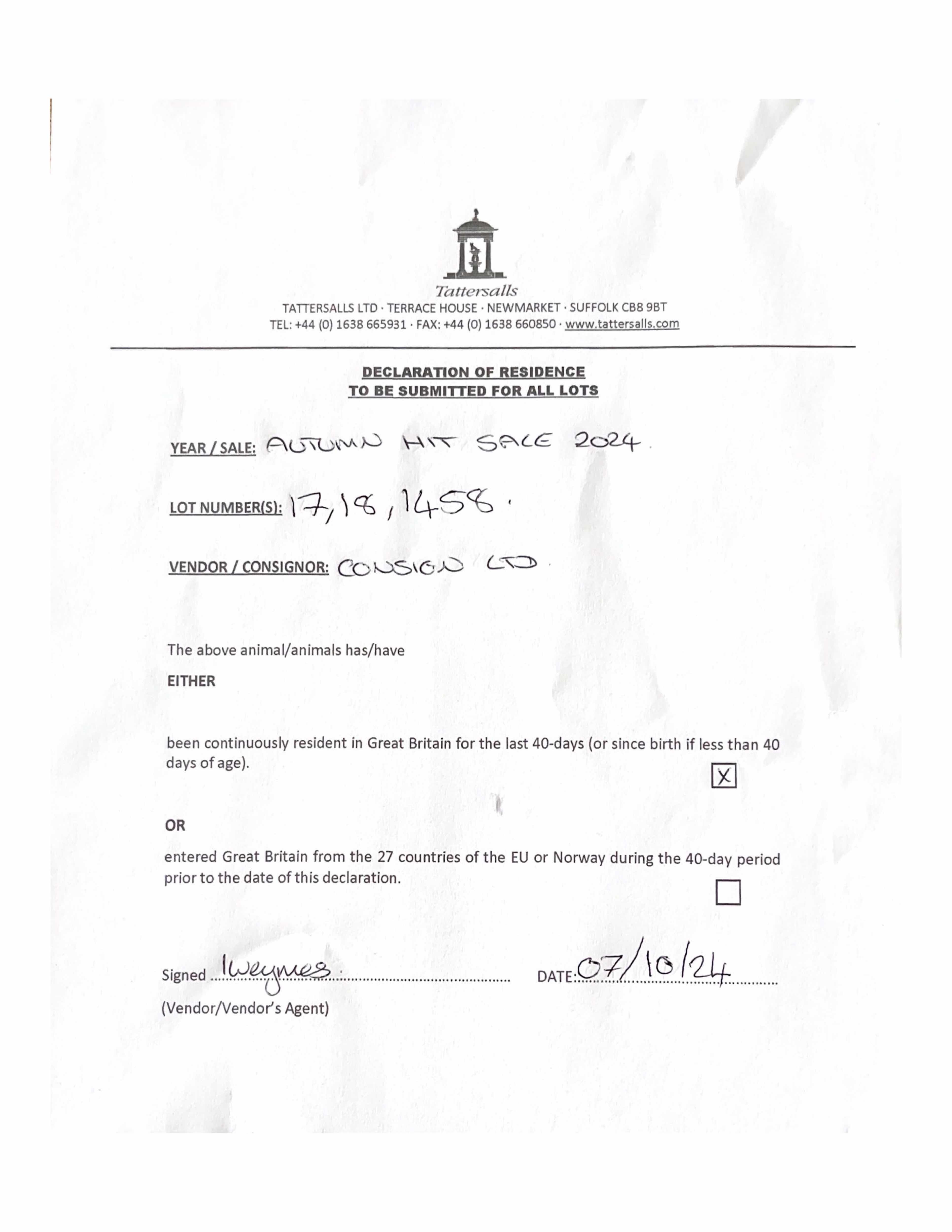 Autumn Yearling Sale 2025 lot 1661 F. by Without Parole (GB) 2024, Consign Ltd.=>Lot Not Sold