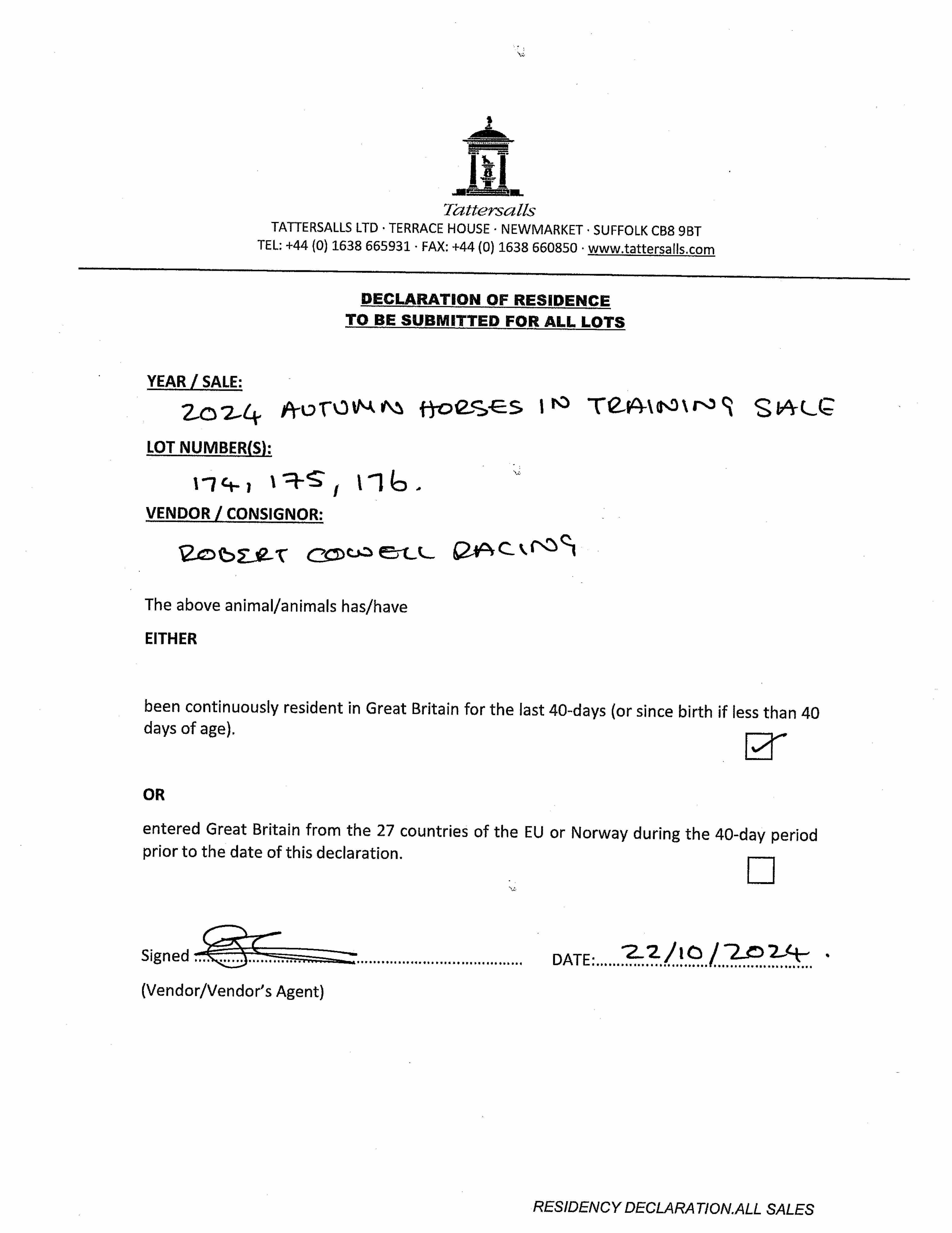 Consignor: Robert Cowell Racing