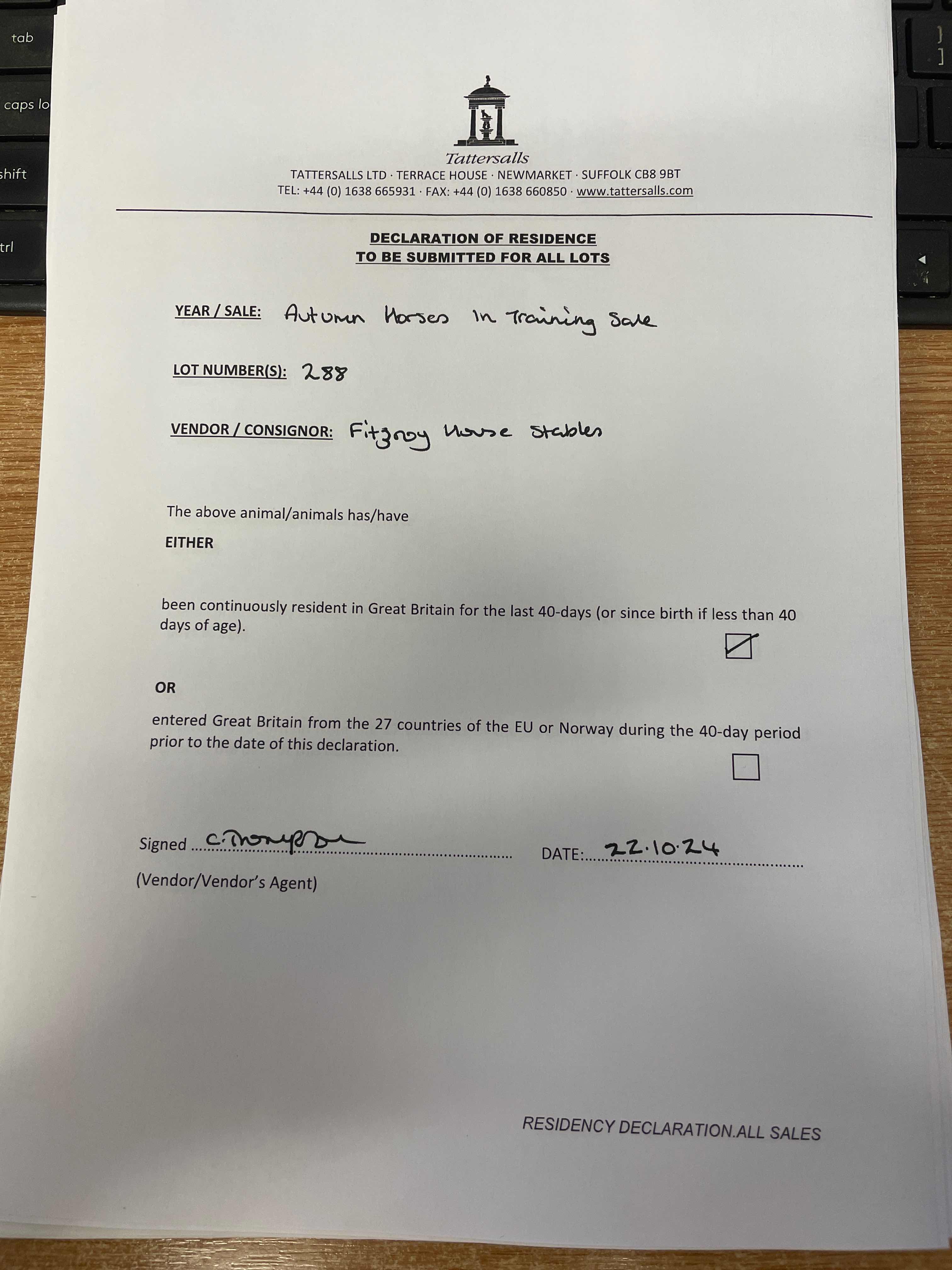 Consignor: Fitzroy House Stables (M. Bell)