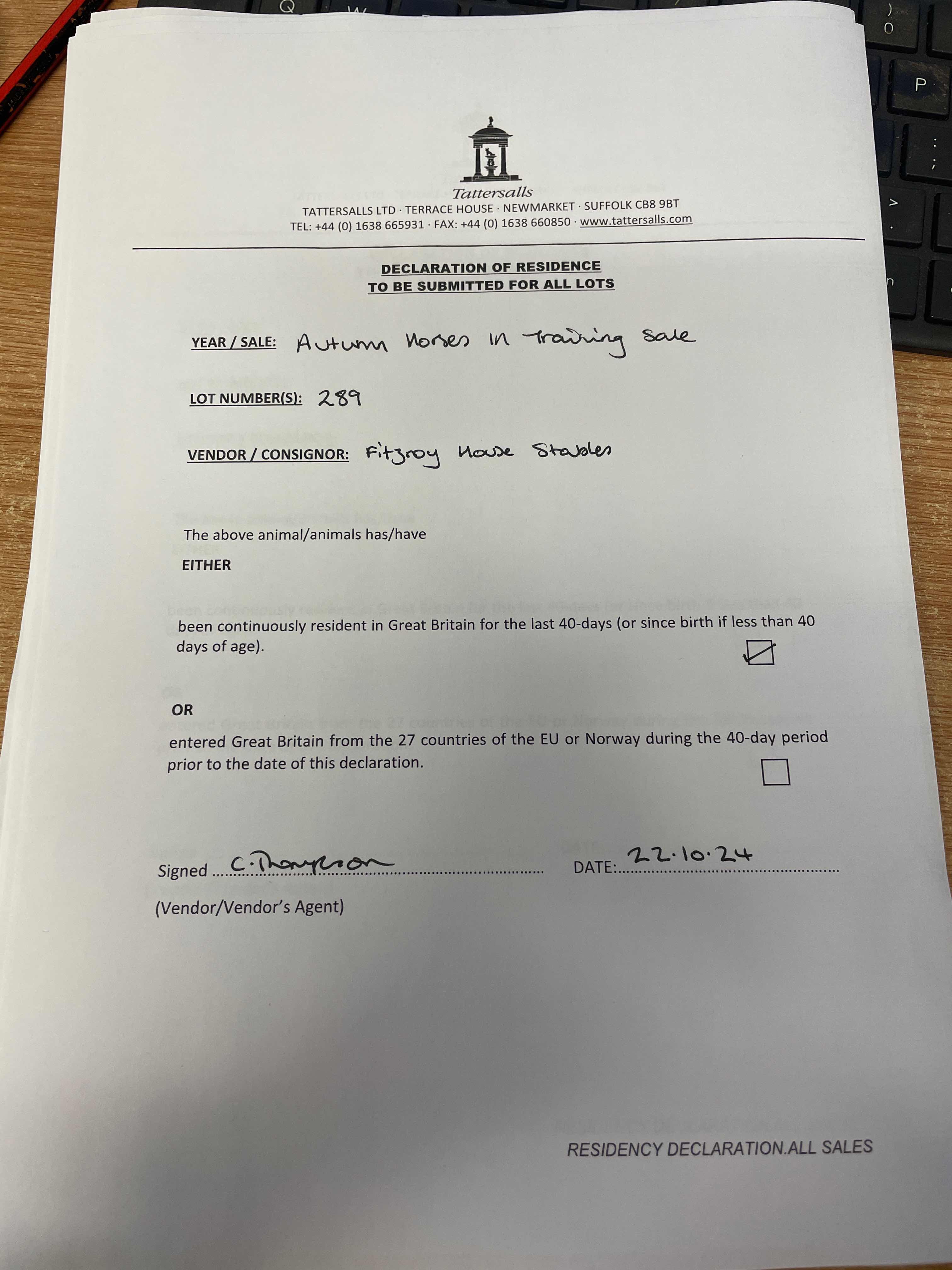 Consignor: Fitzroy House Stables (M. Bell)