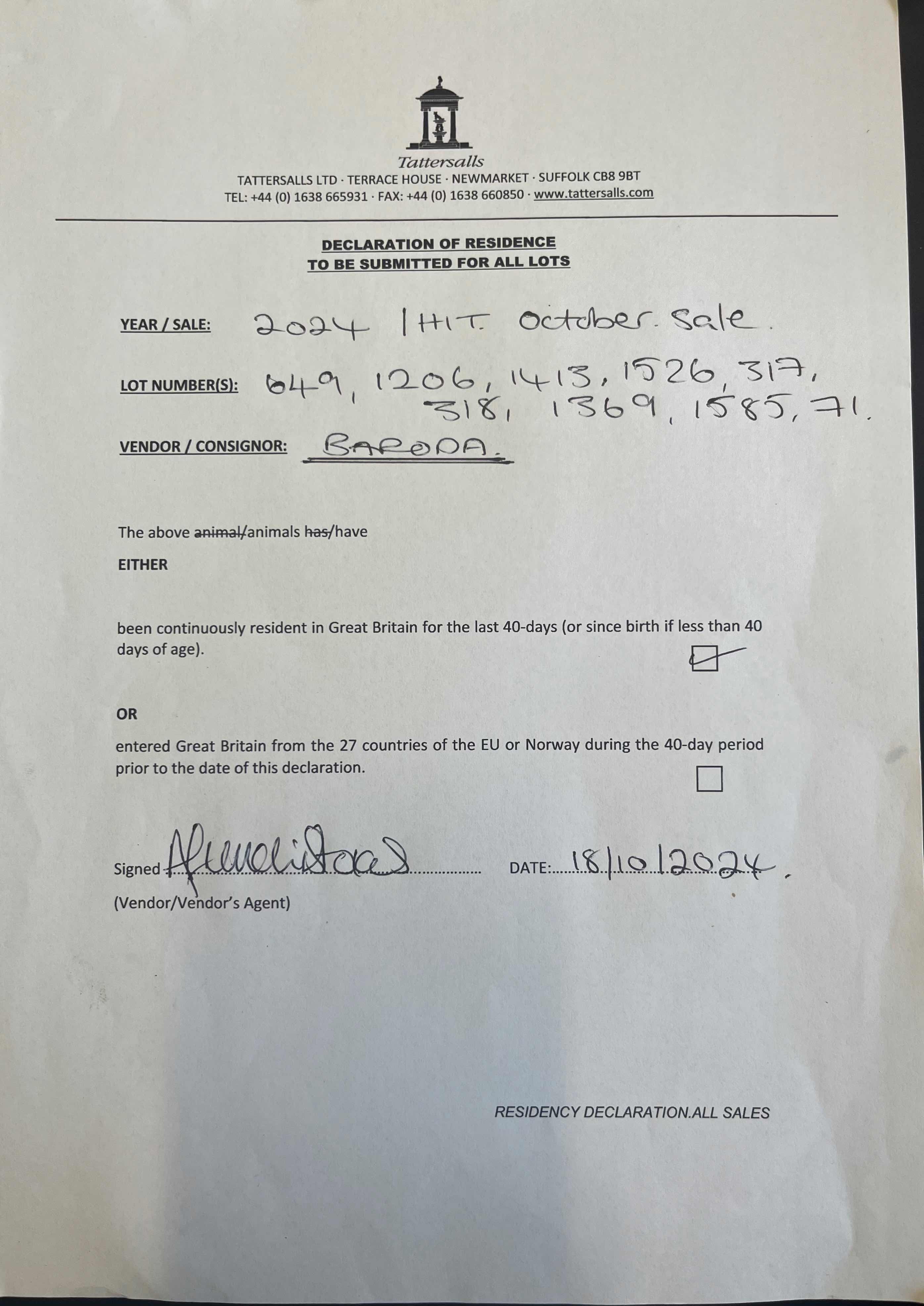 Consignor: Baroda Stud, Ireland