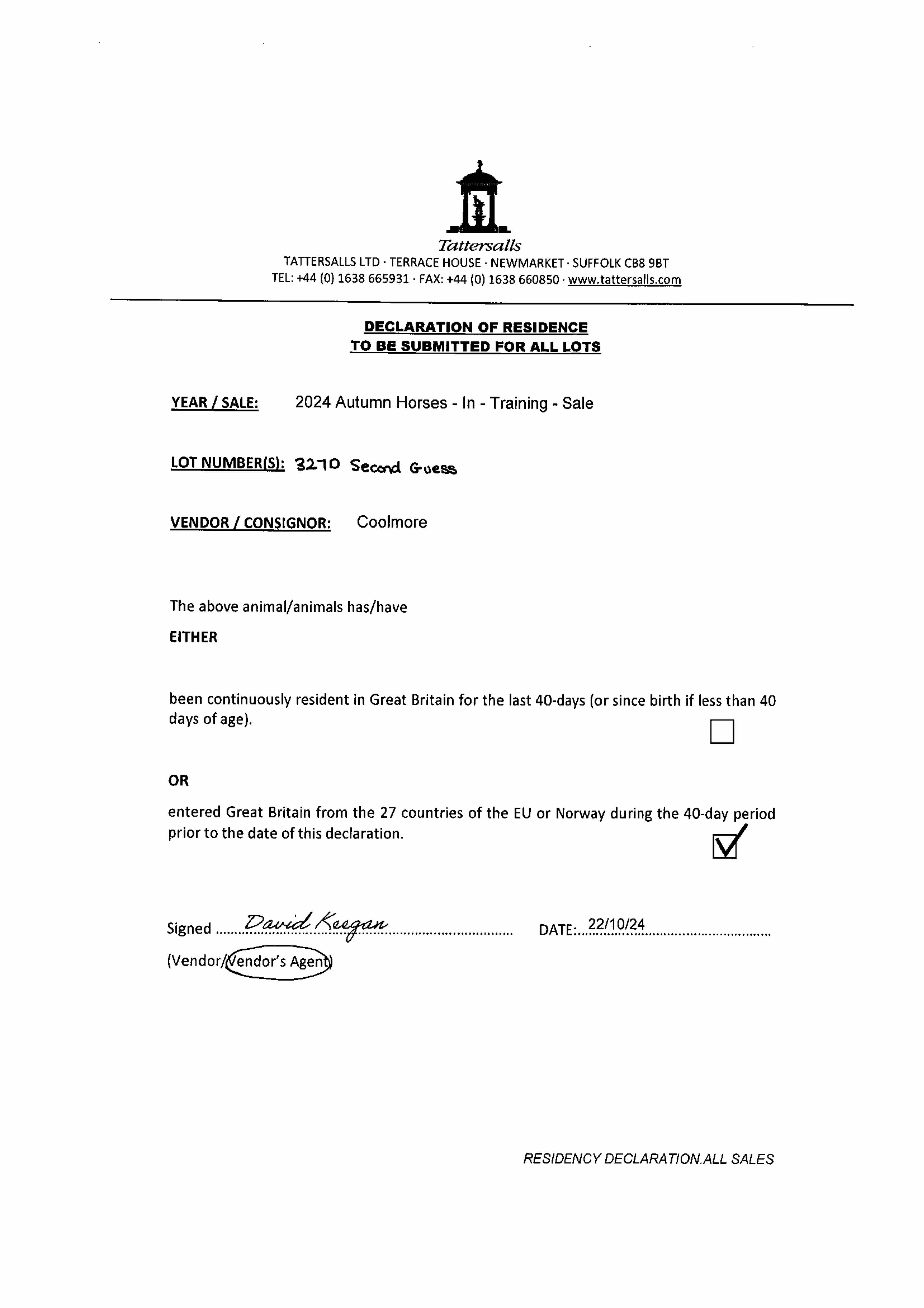 Consignor: Coolmore