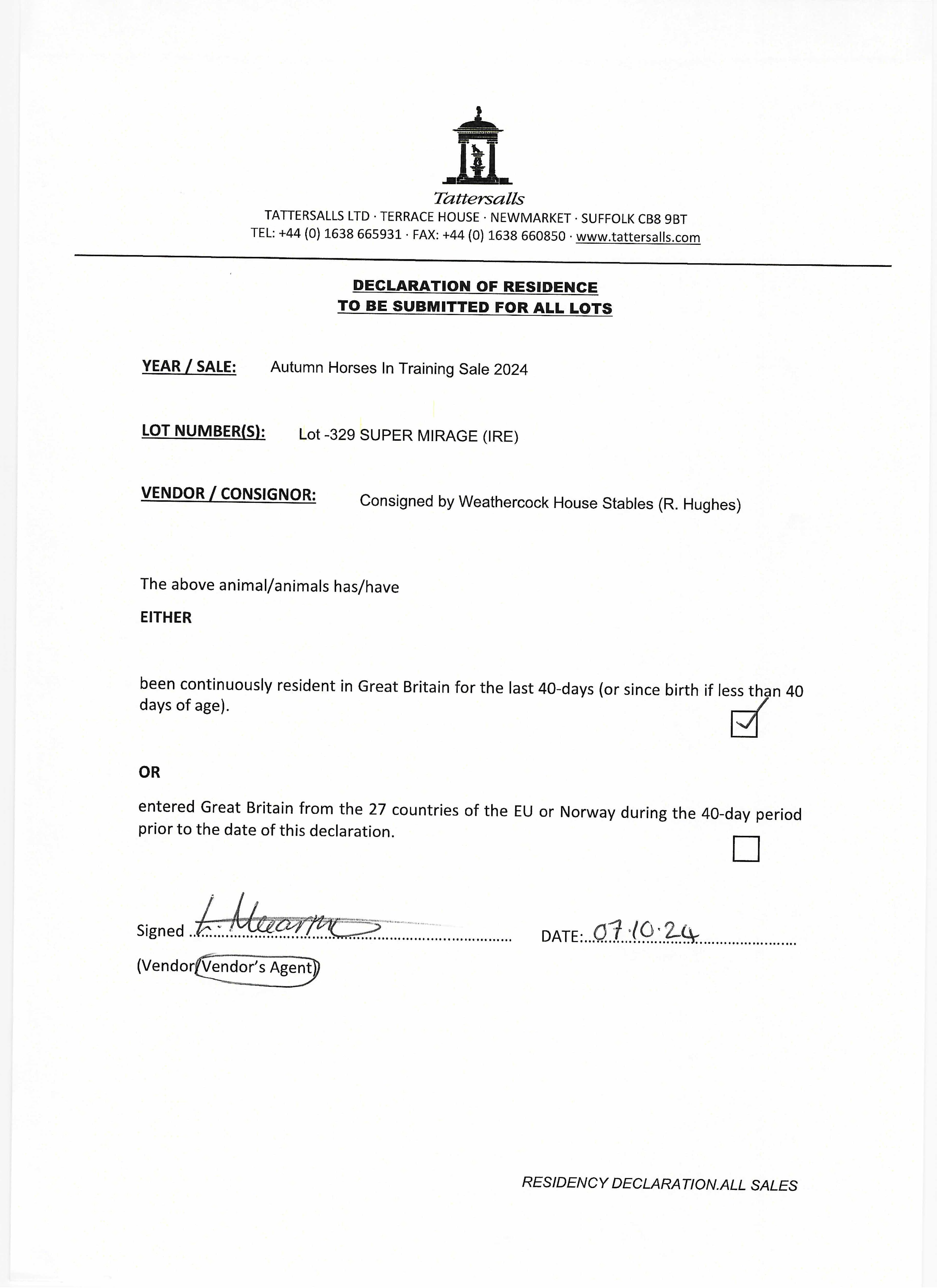 Consignor: Weathercock House Stables (R. Hughes)