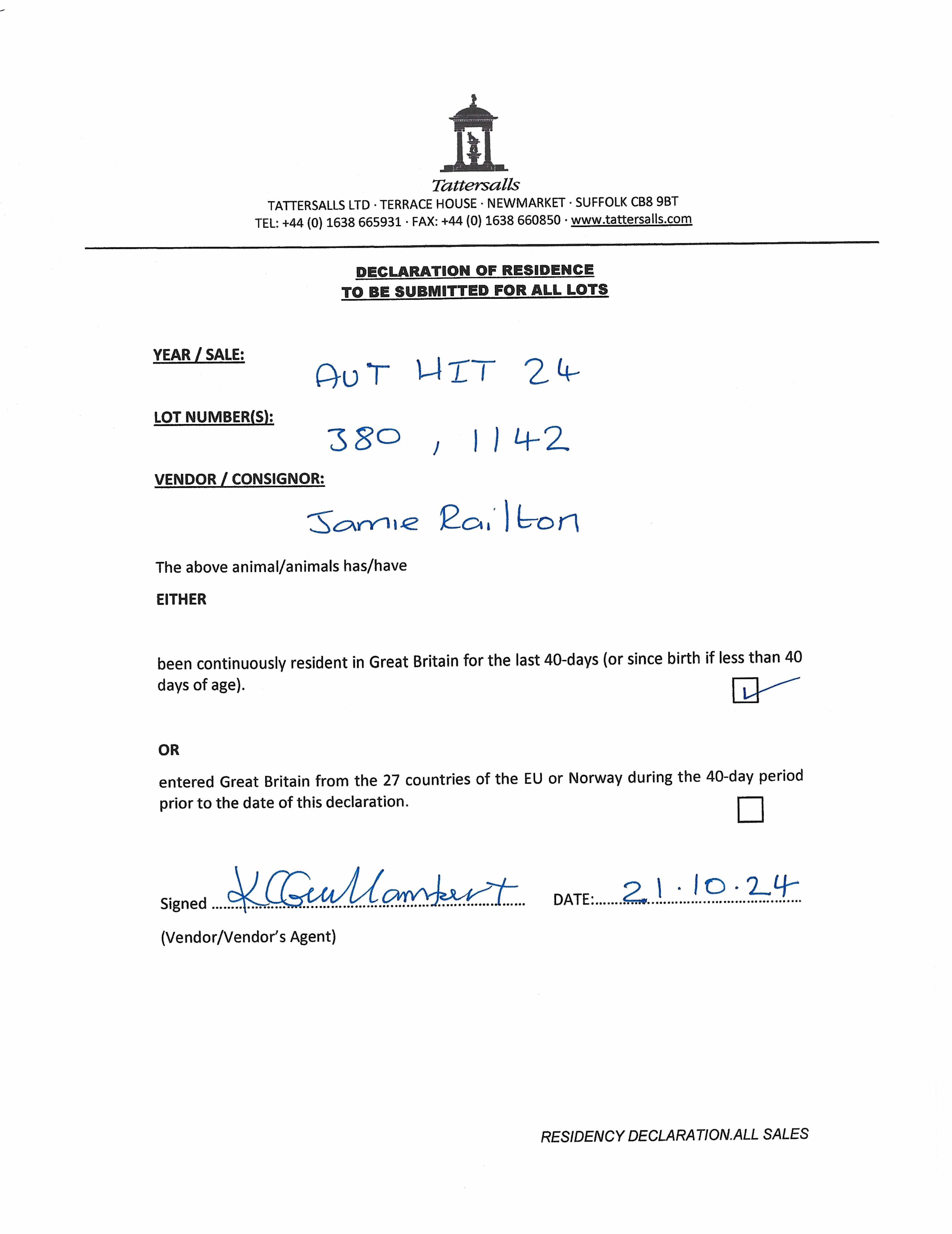 Consignor: Jamie Railton (Agent)