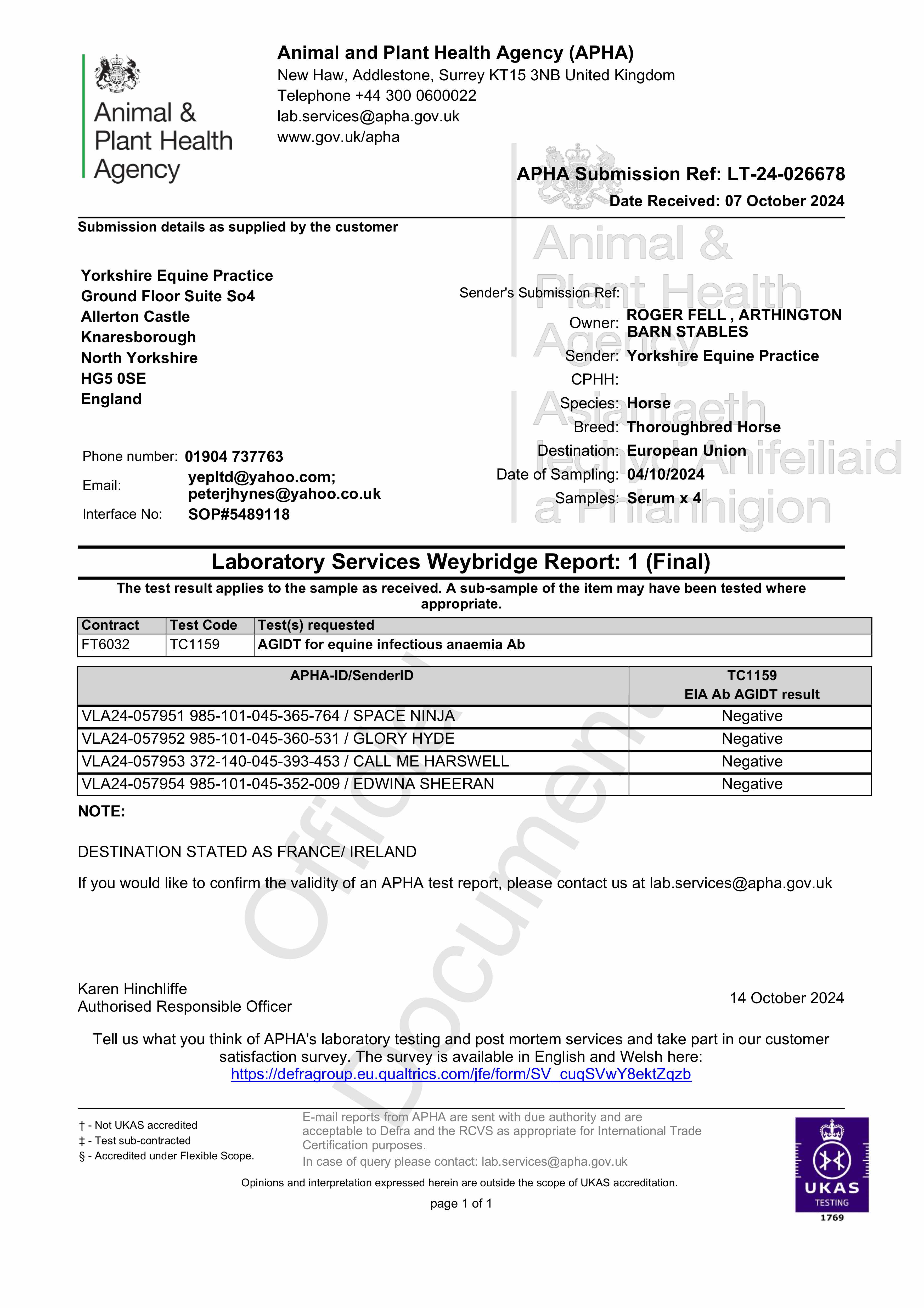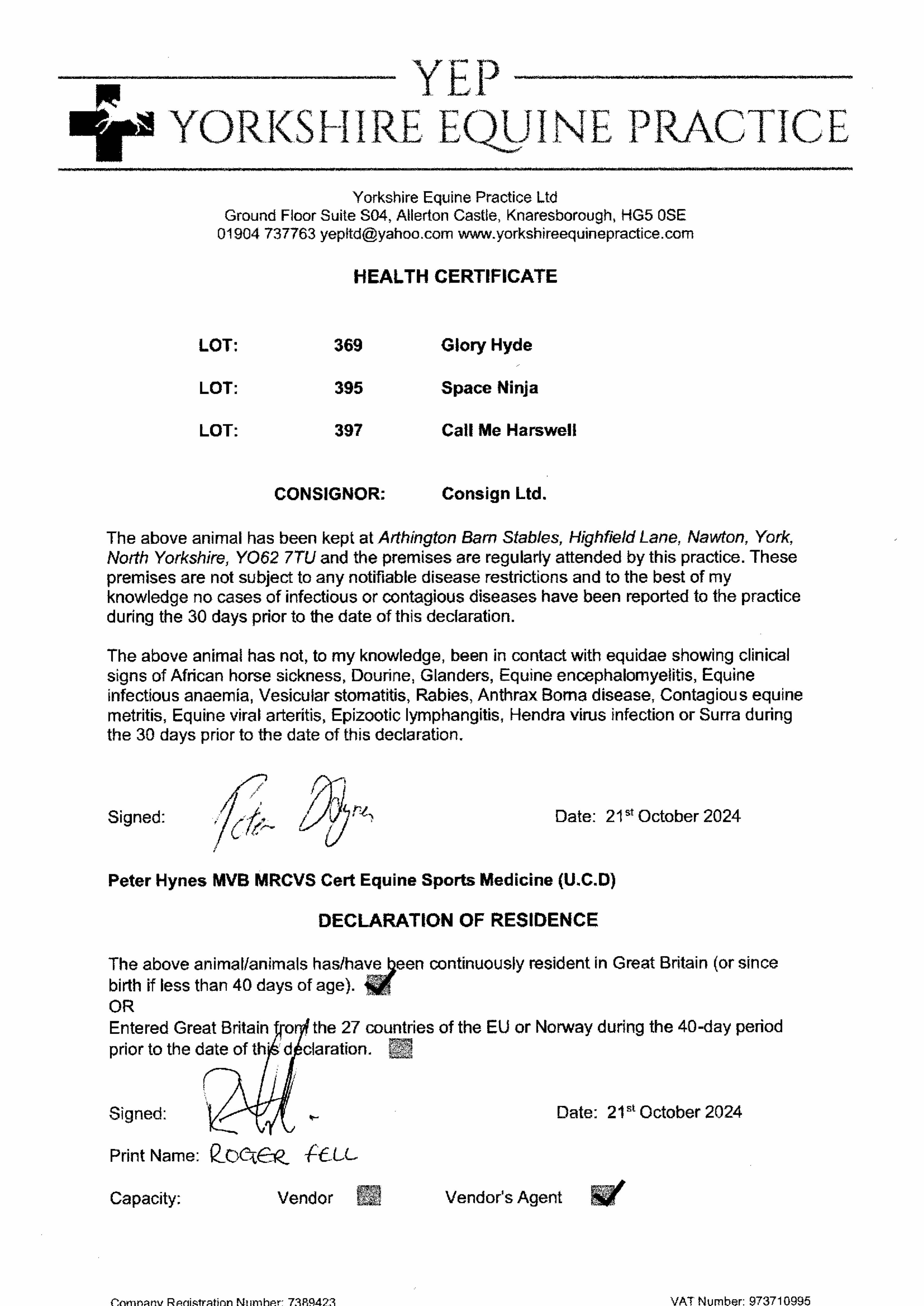 Official Veterinarian Declaration