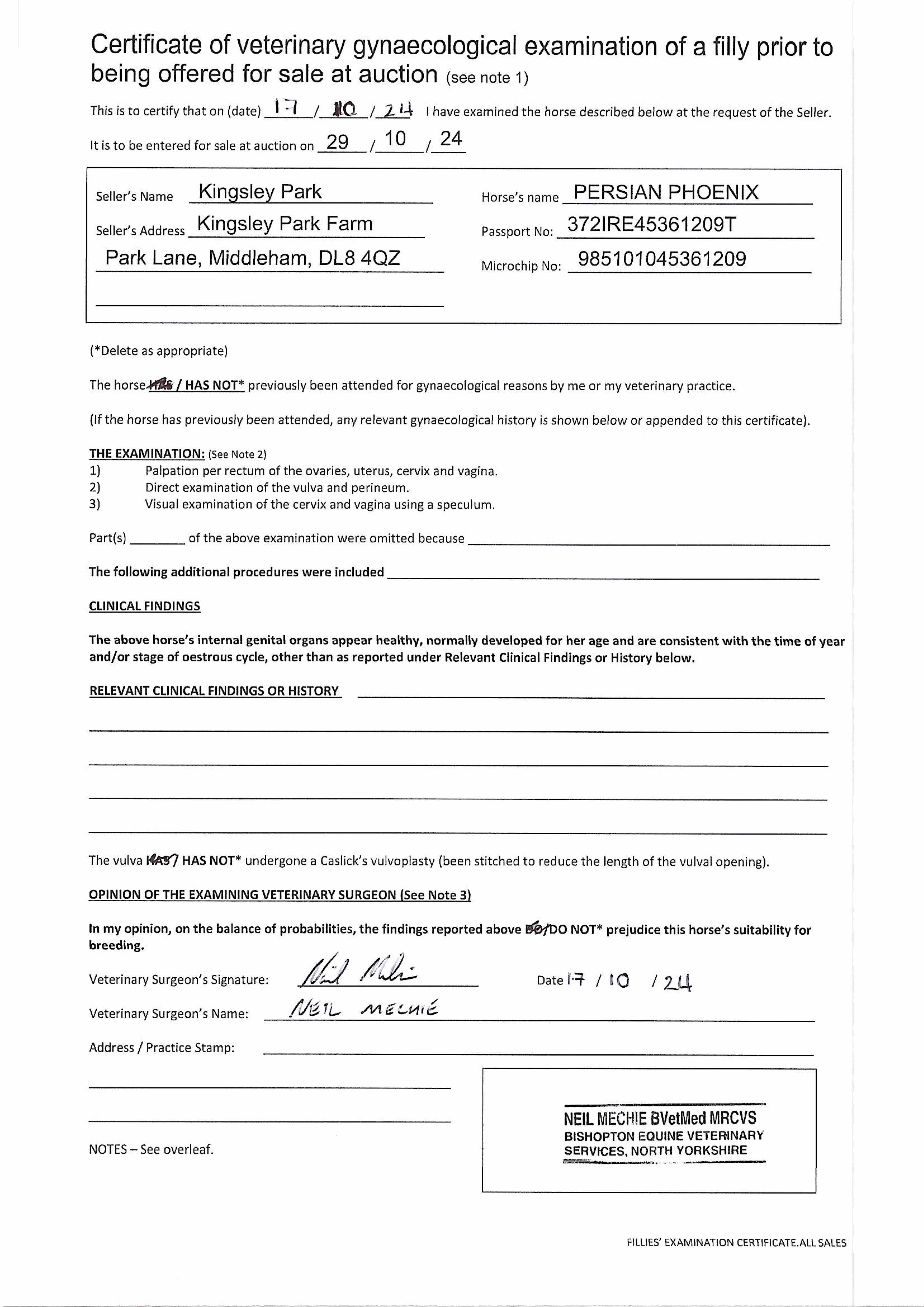Consignor: Kingsley Park