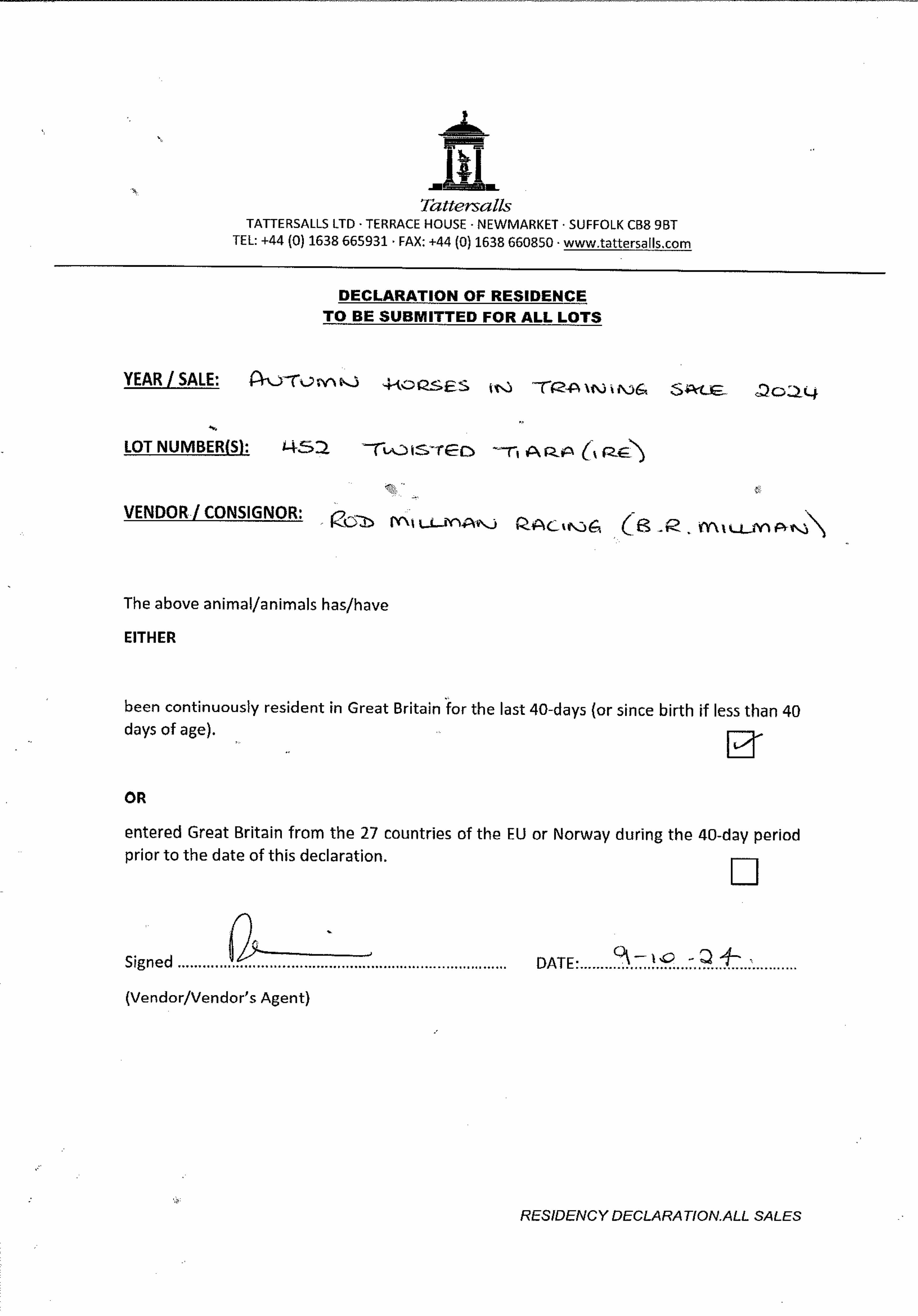 Consignor: The Paddocks (B. R. Millman)