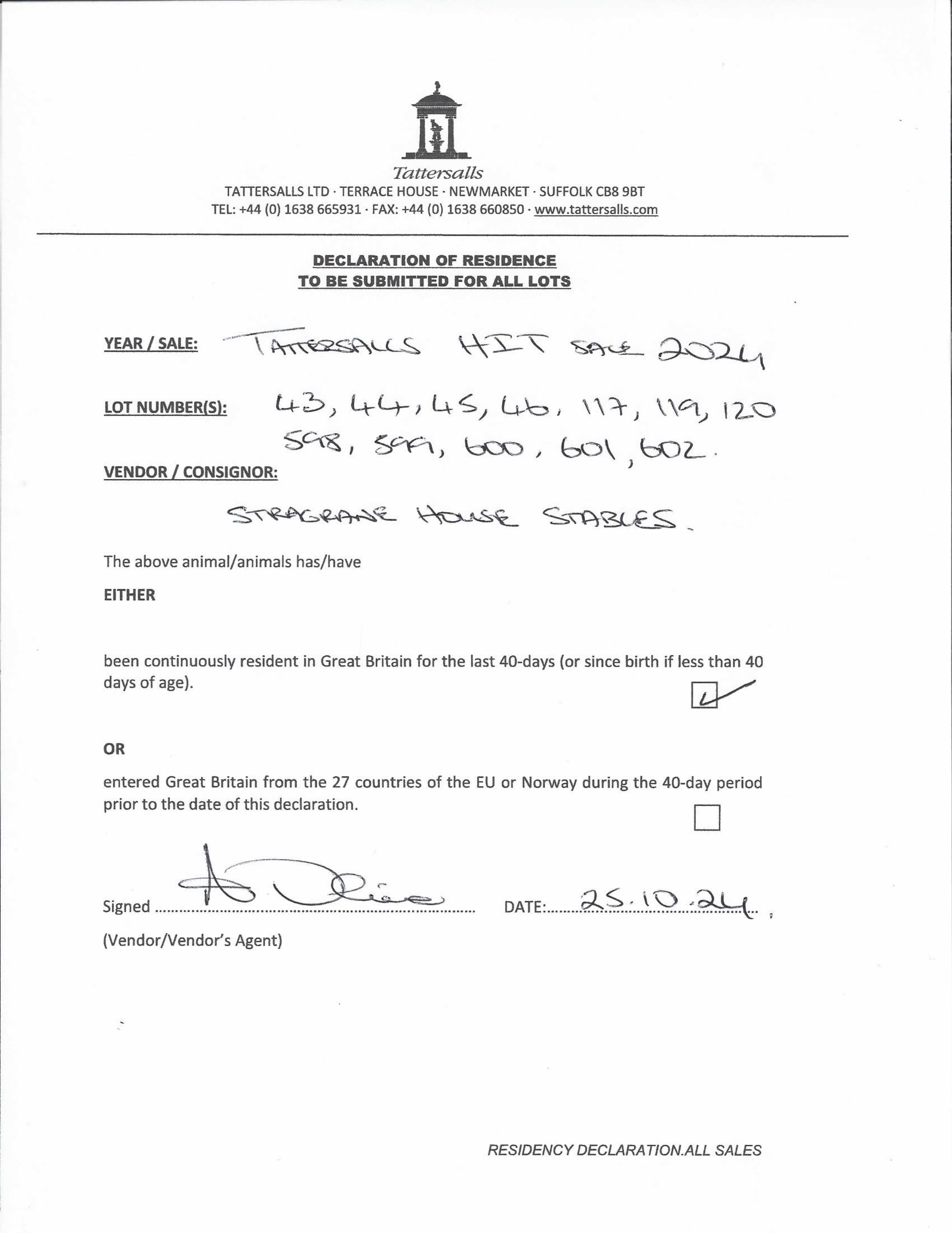 Consignor: Stragrane House Stables (A. Oliver)