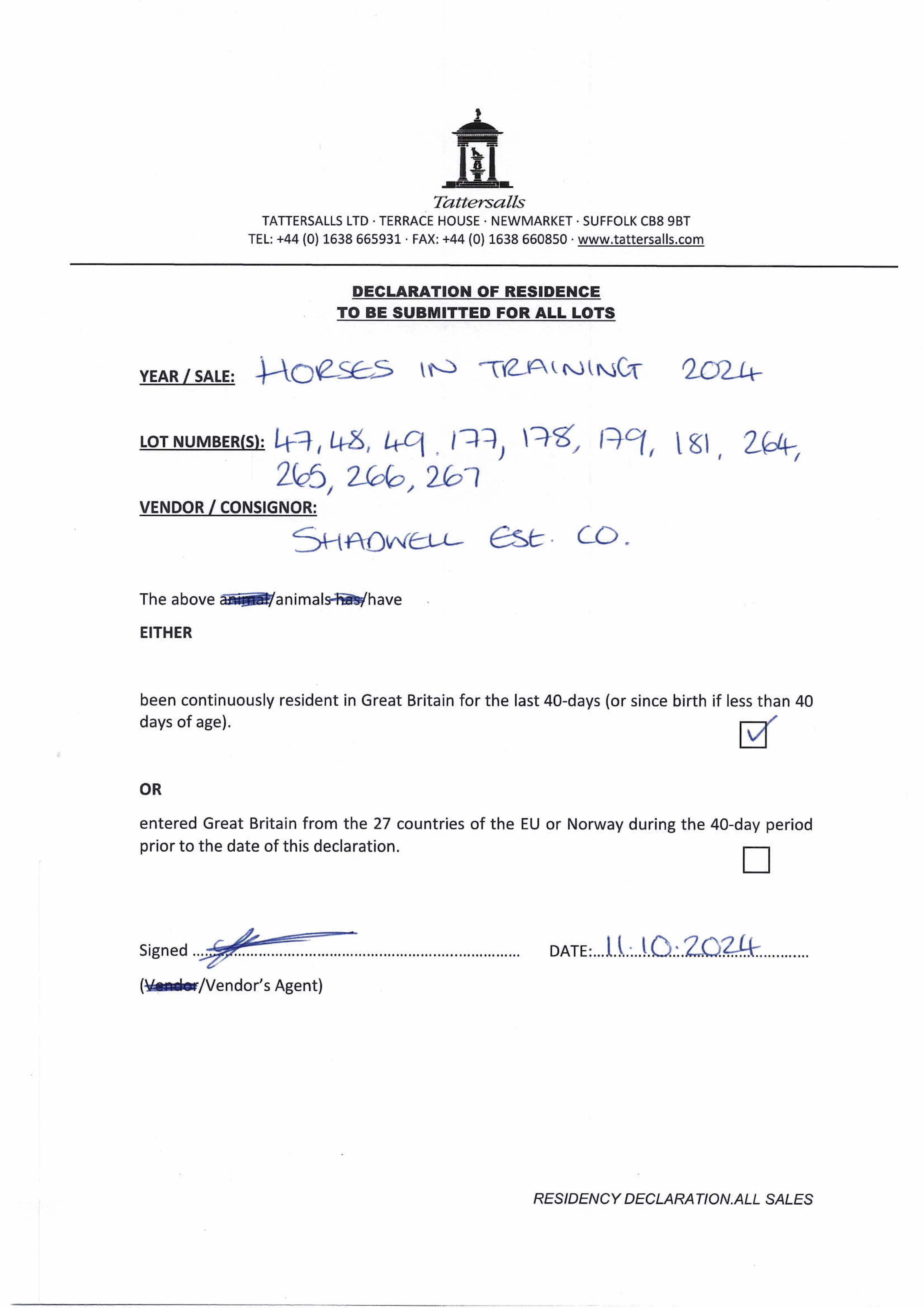 Consignor: Shadwell Estate Company Ltd.