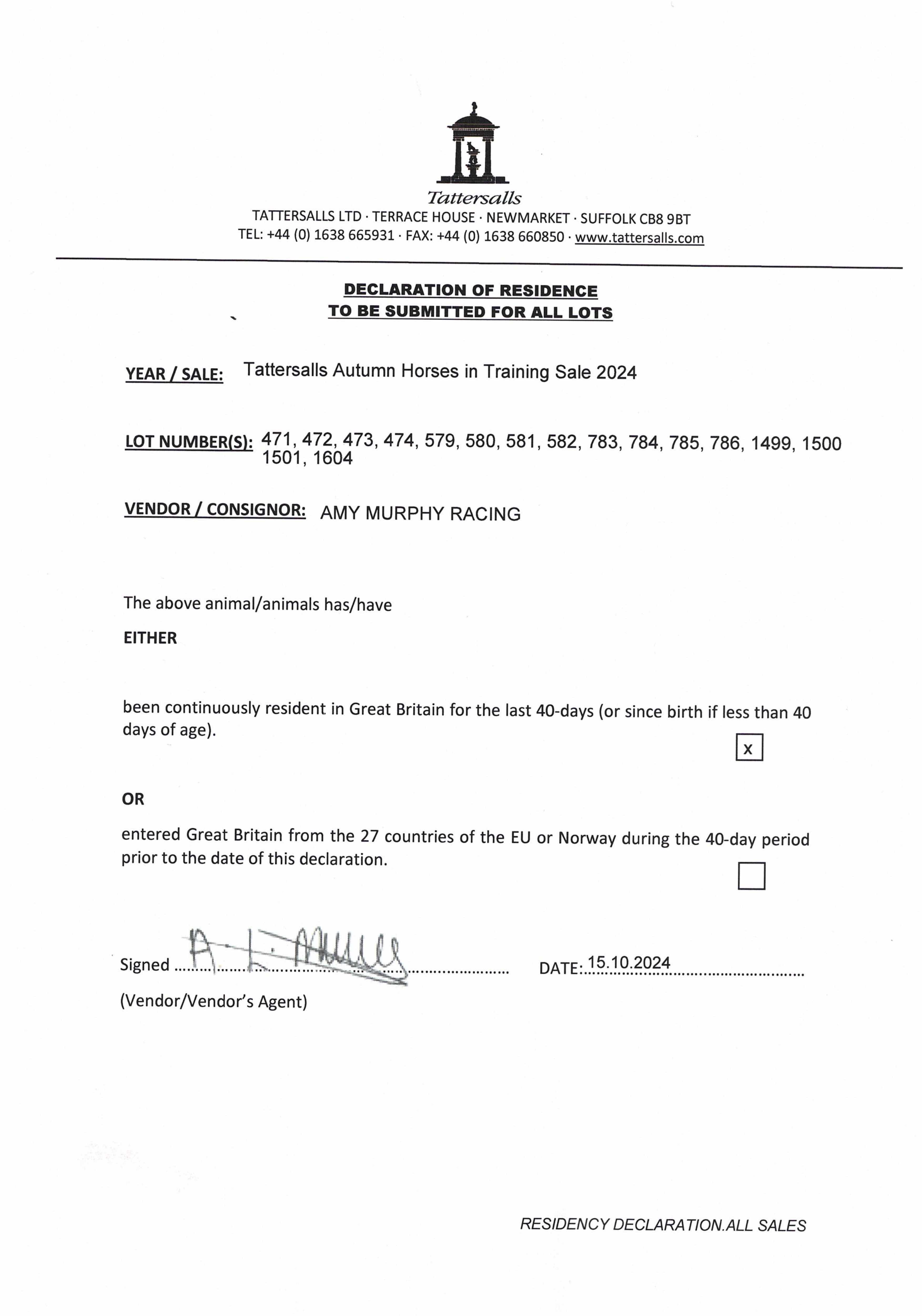 Consignor: Amy Murphy Racing