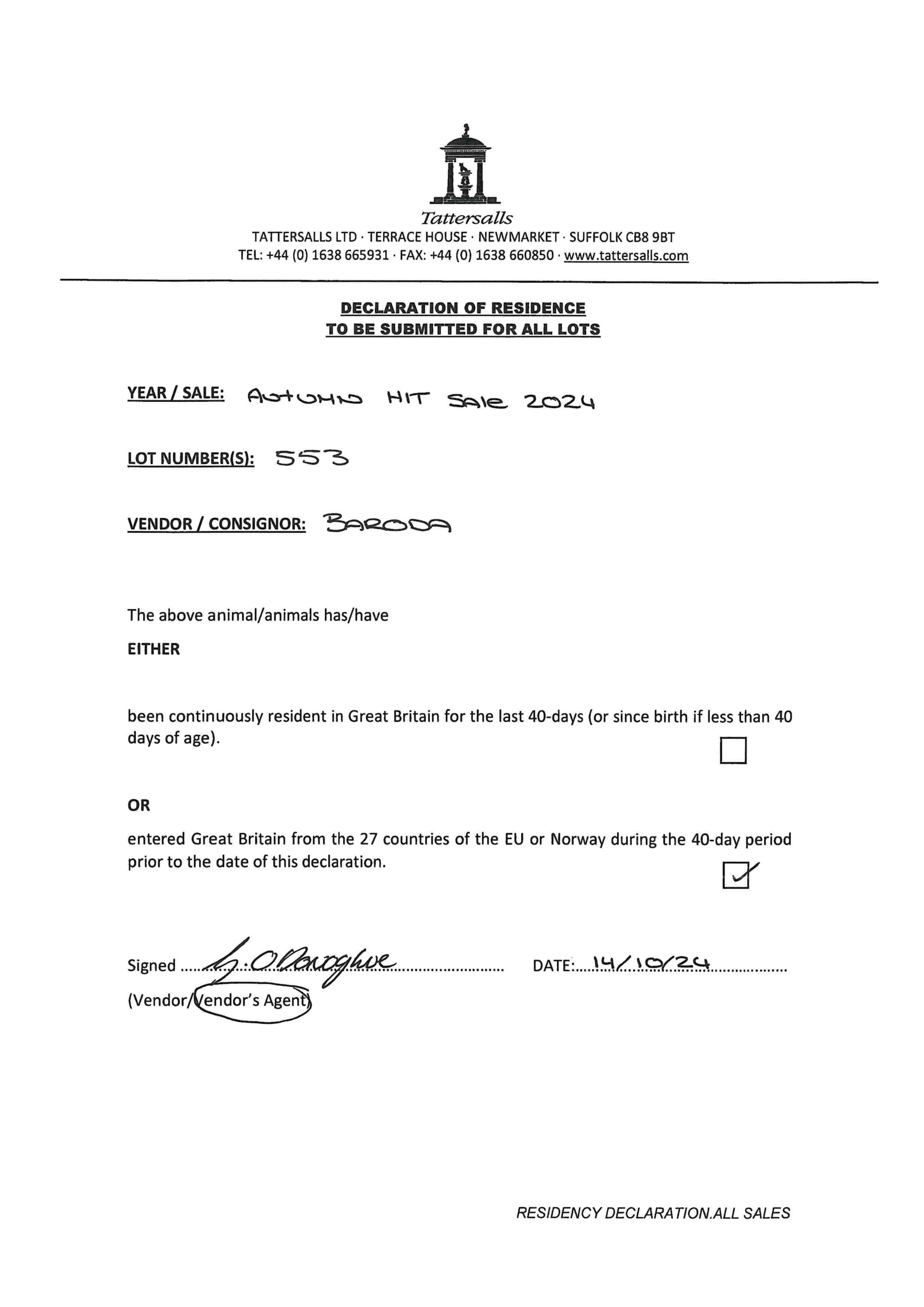 October Yearling Sale, Book 1 2023 lot 400 F. by Starspangledbanner (AUS) 2022, Manister House Stud, Ireland=>Lanigan / Durcan Agent For Heider Family Stables 230,000 gns