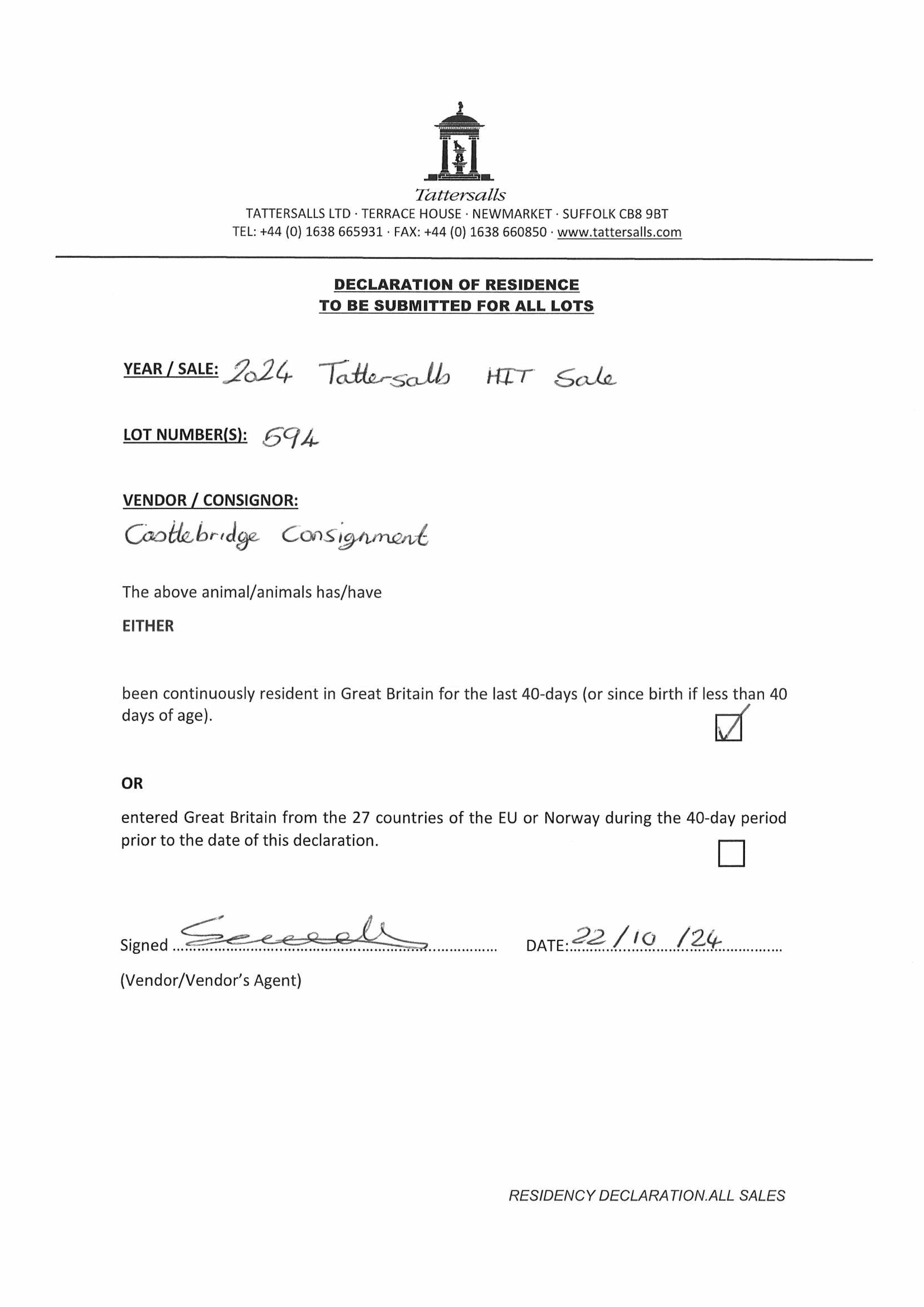 Consignor: The Castlebridge Consignment