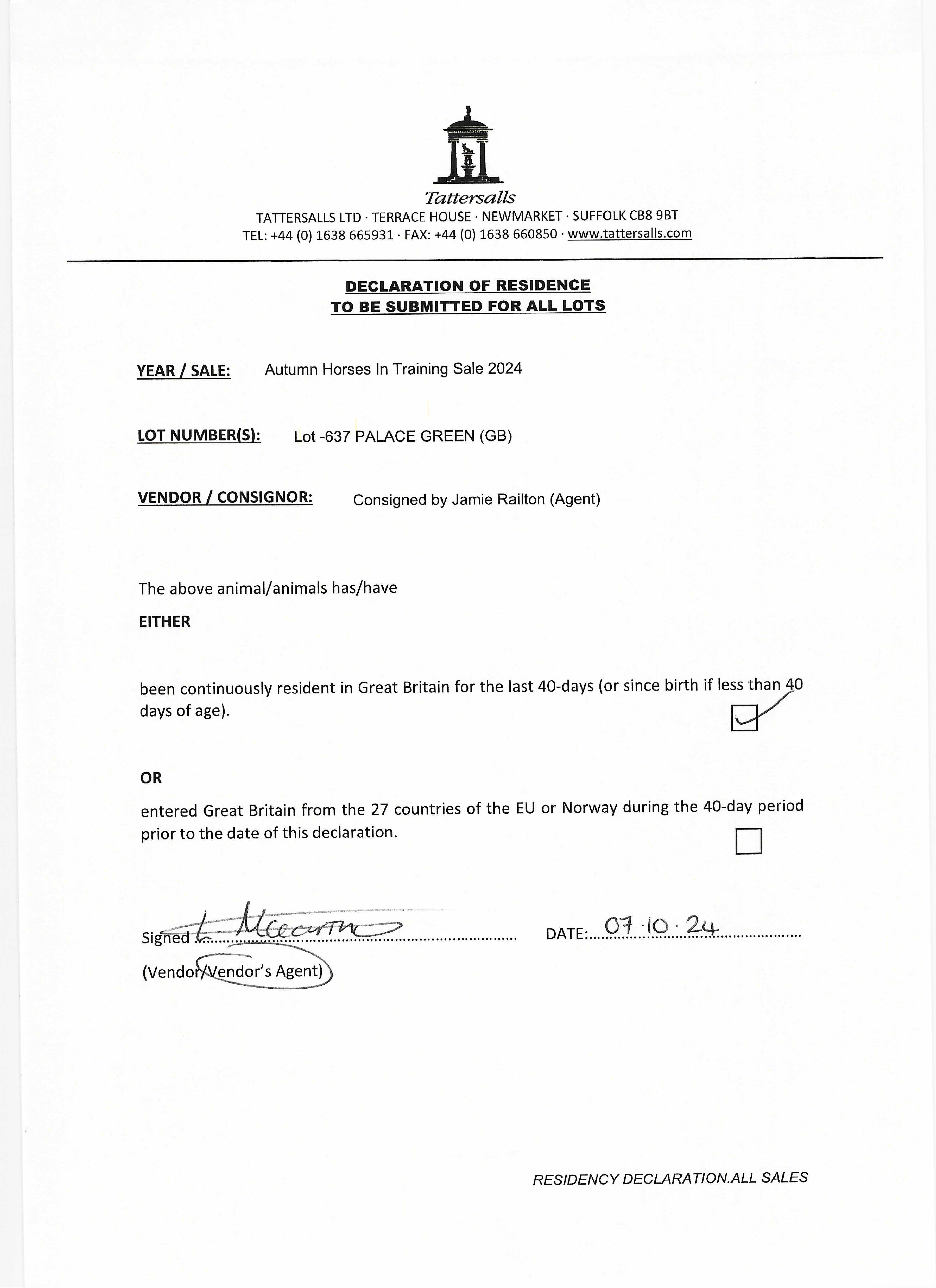 October Yearling Sale, Book 3 2025 lot 1541 F. 2024, Oakhurst Stud=>Vendor 1,500 gns