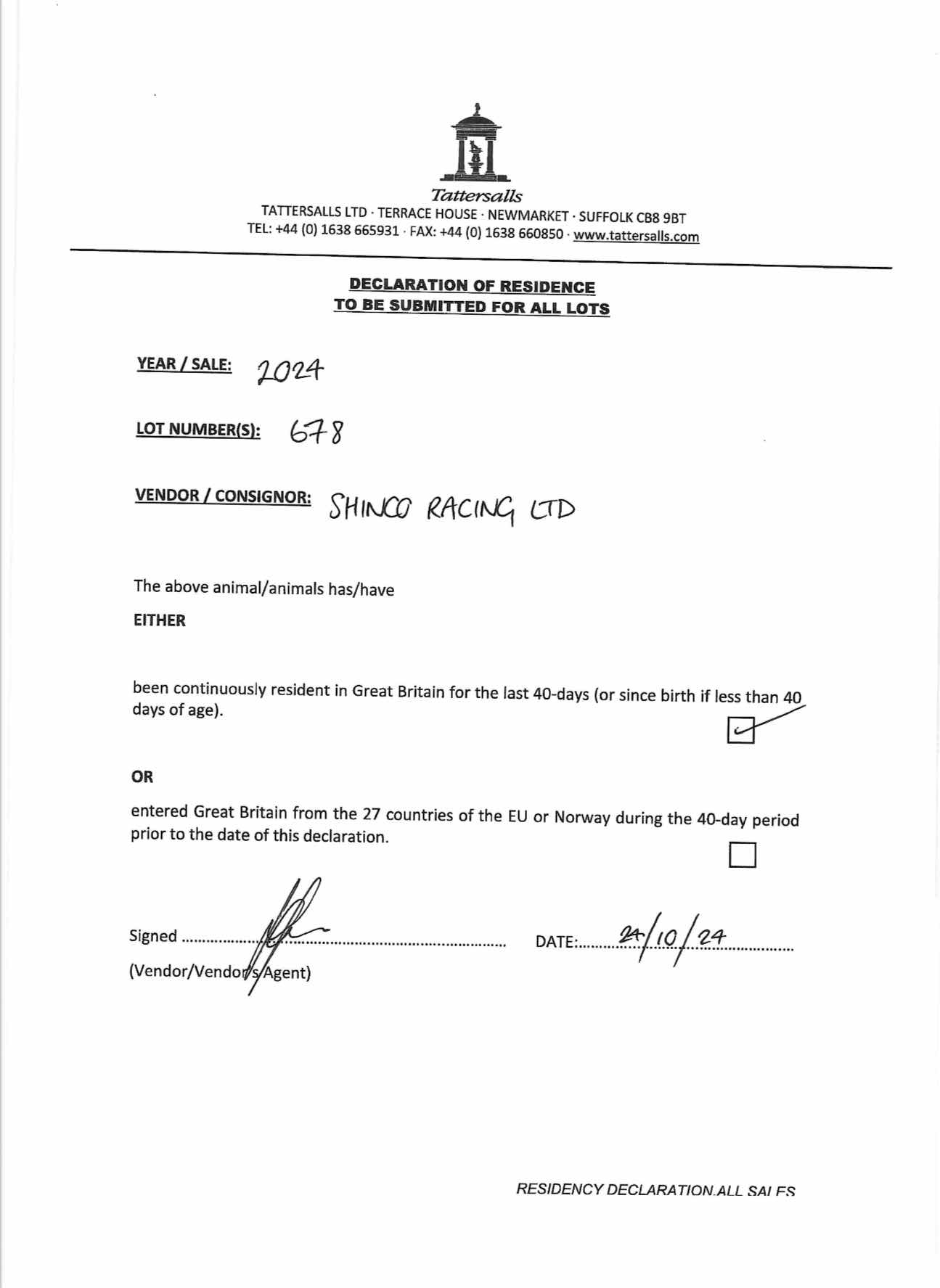 Consignor: Shinco Racing Ltd. (D. Menuisier)