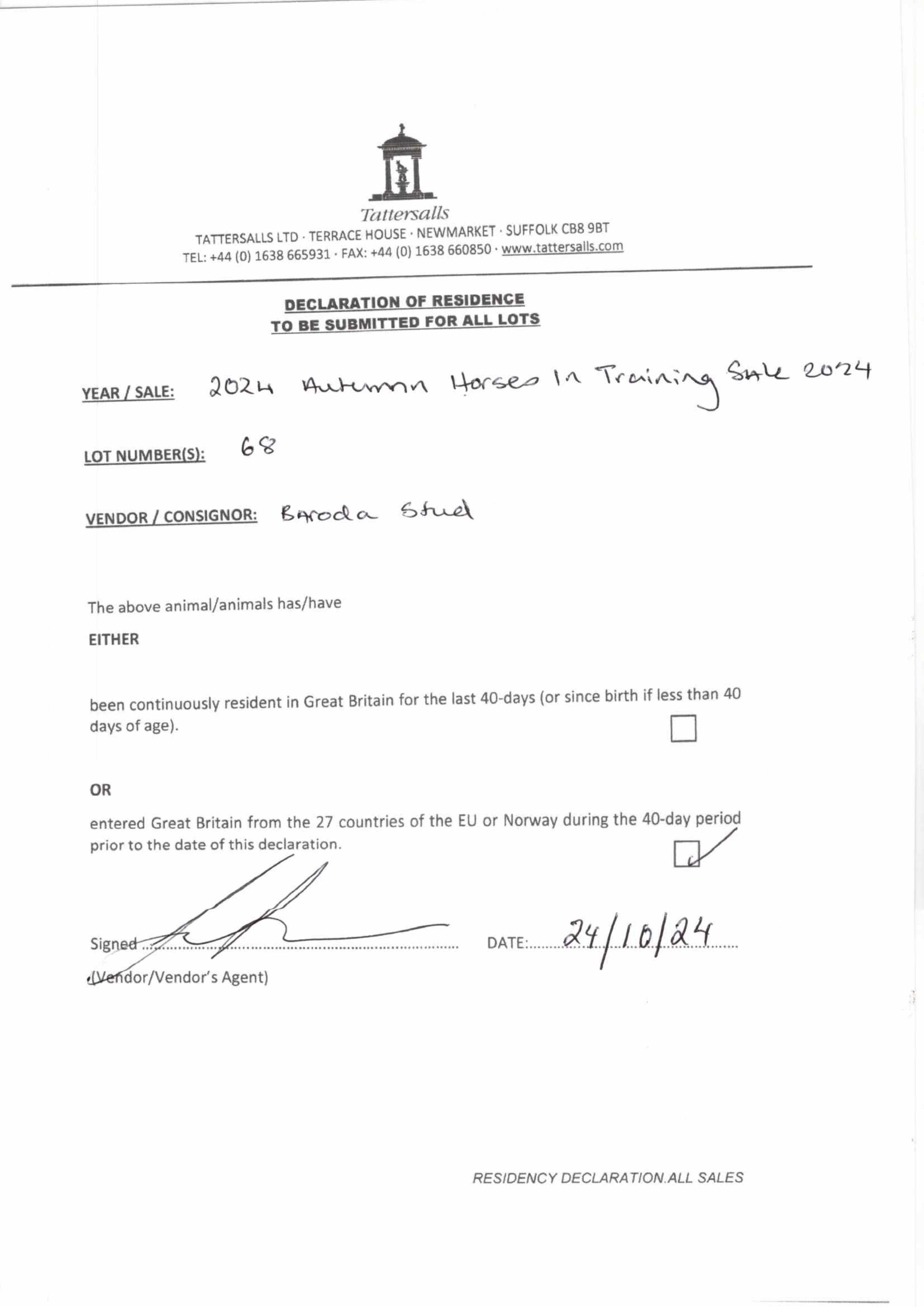 Consignor: Baroda Stud, Ireland