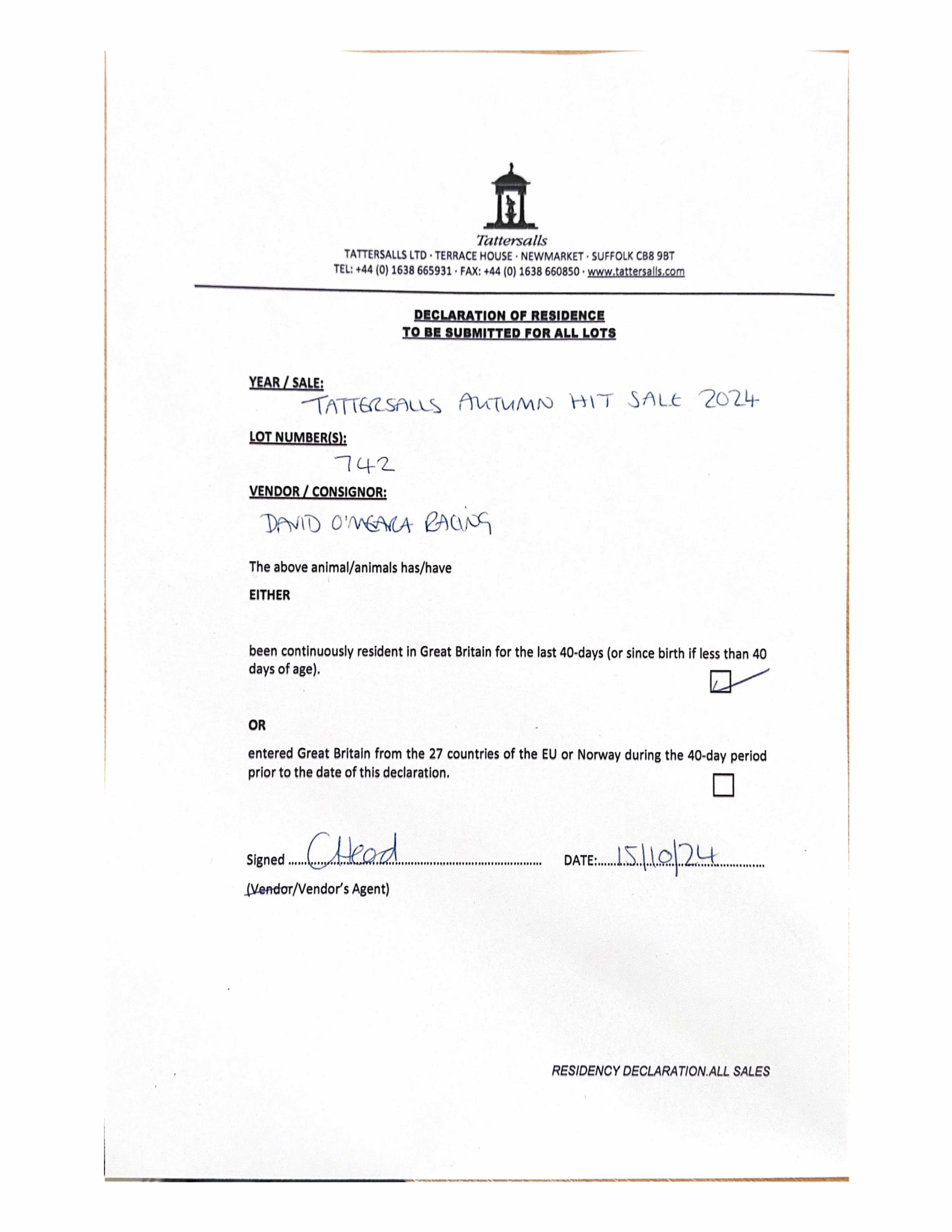 Consignor: Baroda Stud, Ireland