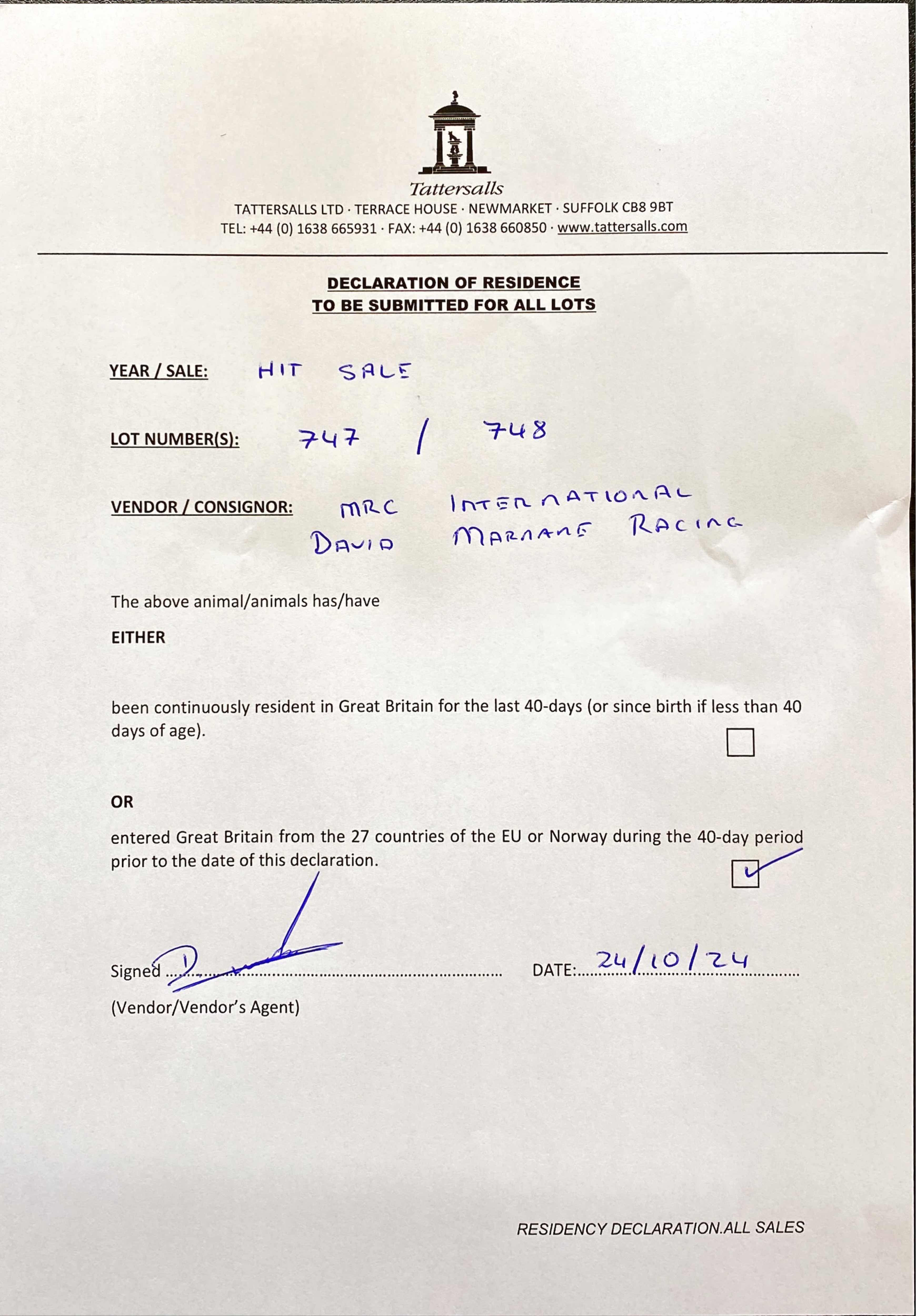 Consignor: David Marnane Racing, Ireland