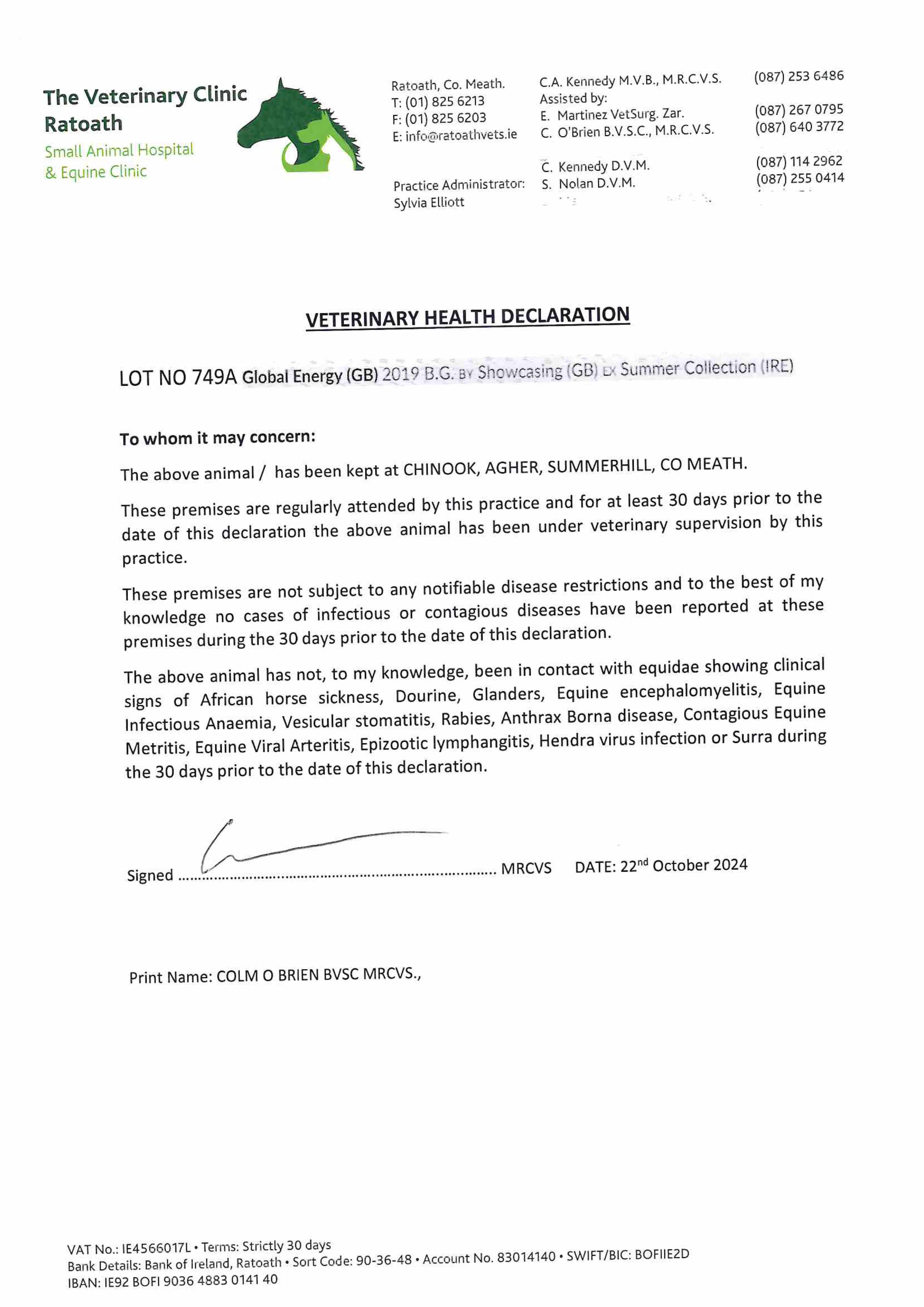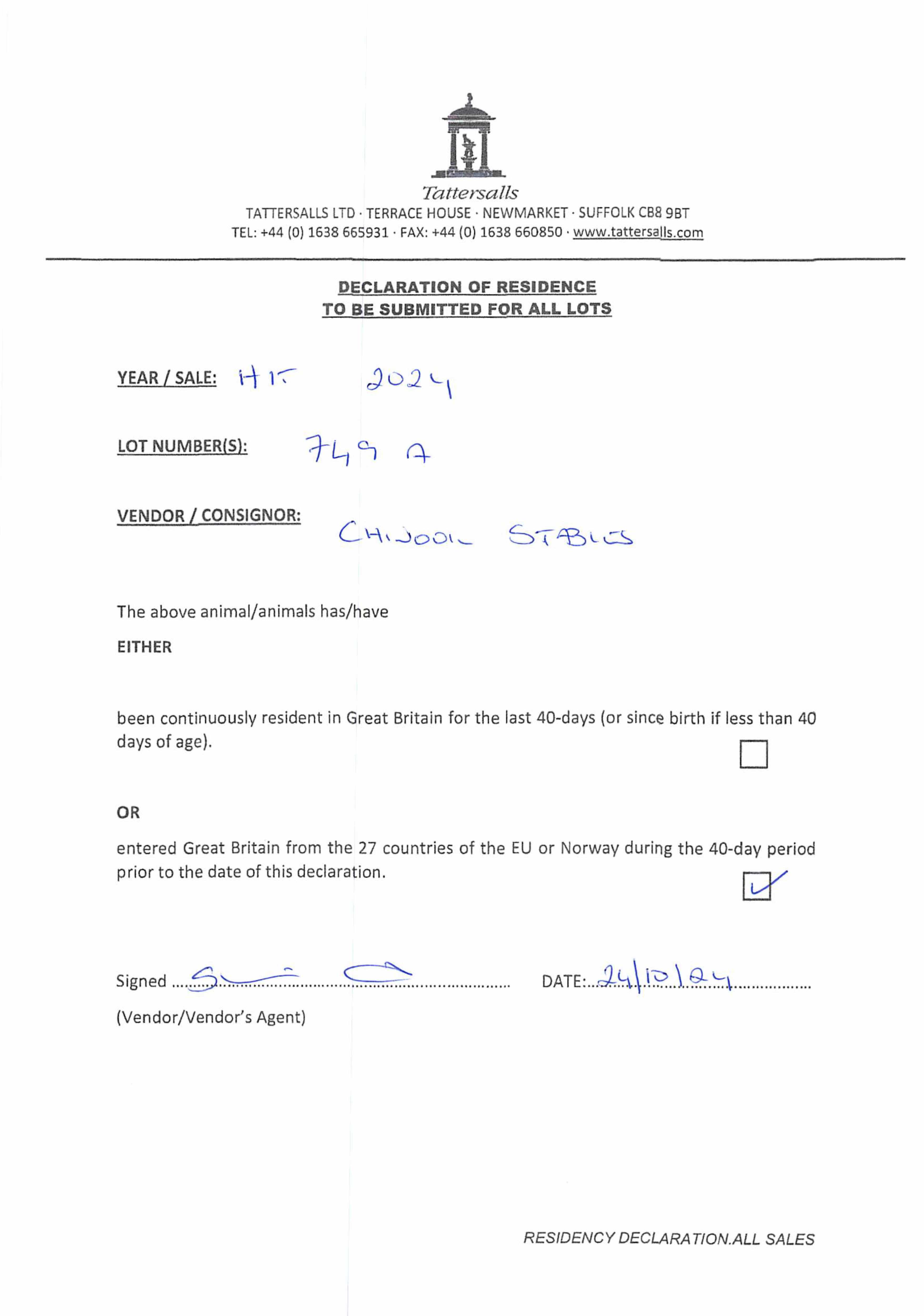 Consignor: Chinook Stables, Ireland (Ms S. Lavery)