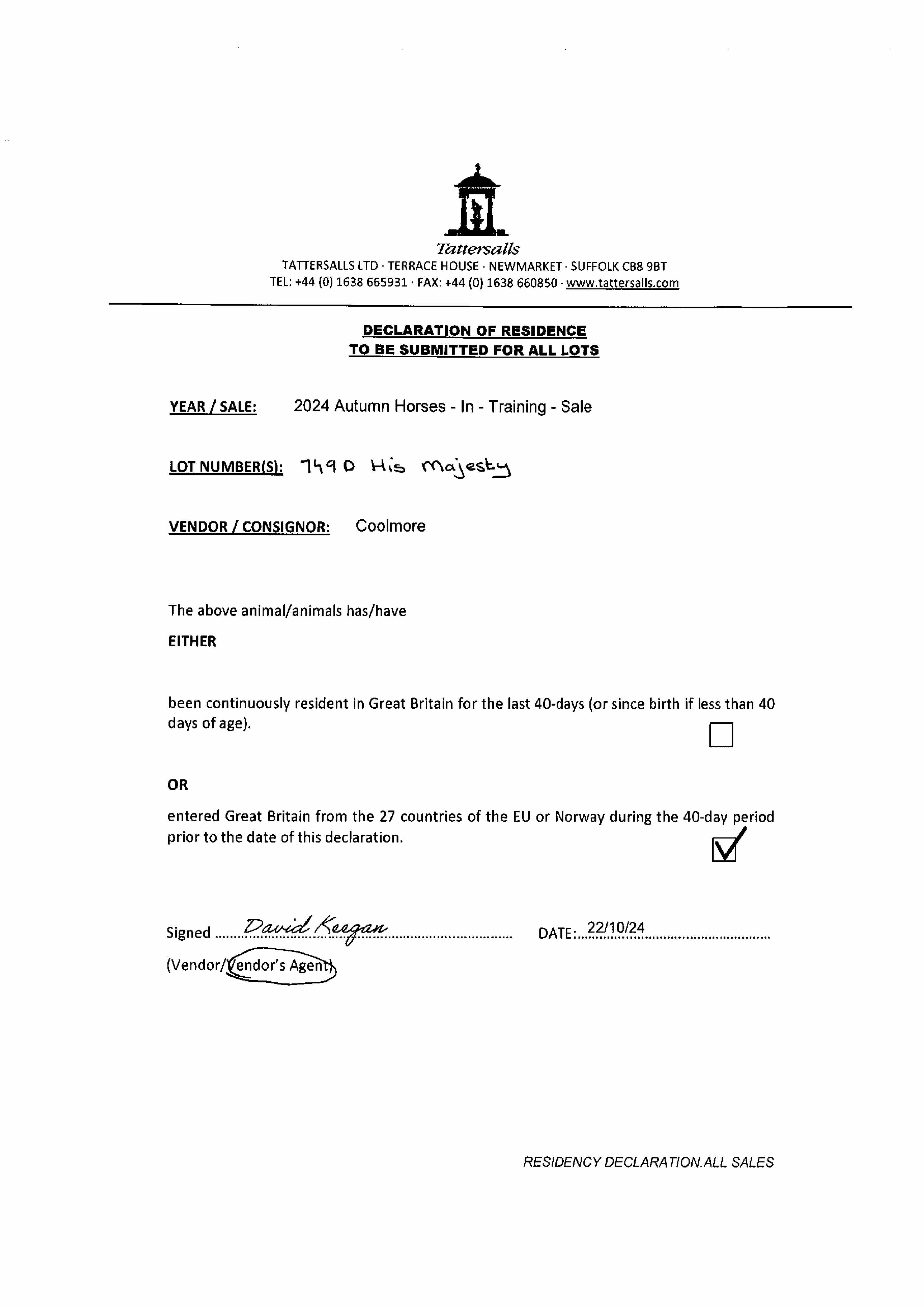 Online August Sale 2020 lot 9 Coill Avon (IRE) (C. by Kingman (GB)), Glenburnie Stables, Ireland (G. Lyons)=>Vendor £230,000