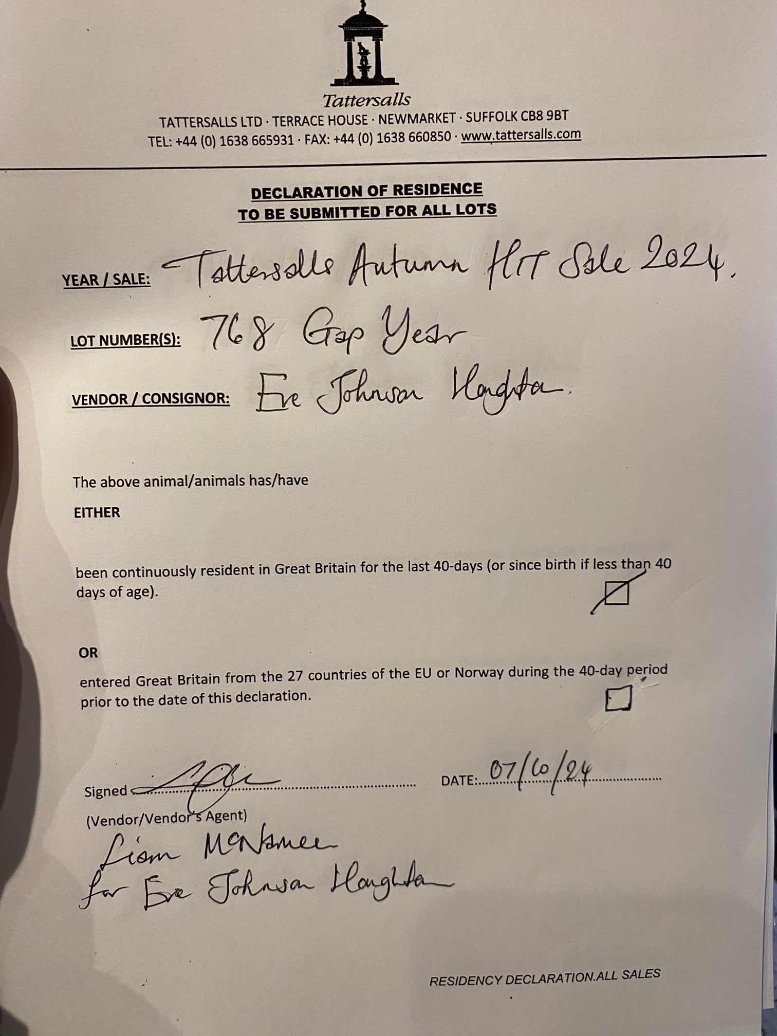 December Foal Sale 2024 lot 1123 F. by Space Traveller (GB) 2024, Confey Stud, Ireland=>Lot Not Sold 4,800 gns